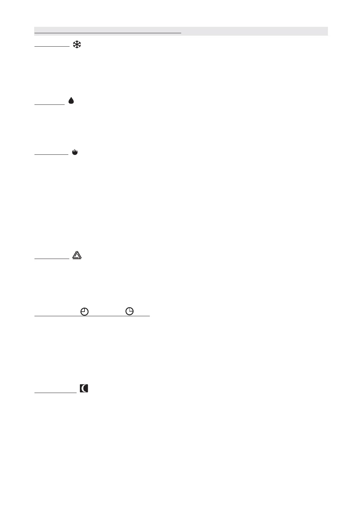 · For heating mode, the set temperature will decrease by 1 C per hour.