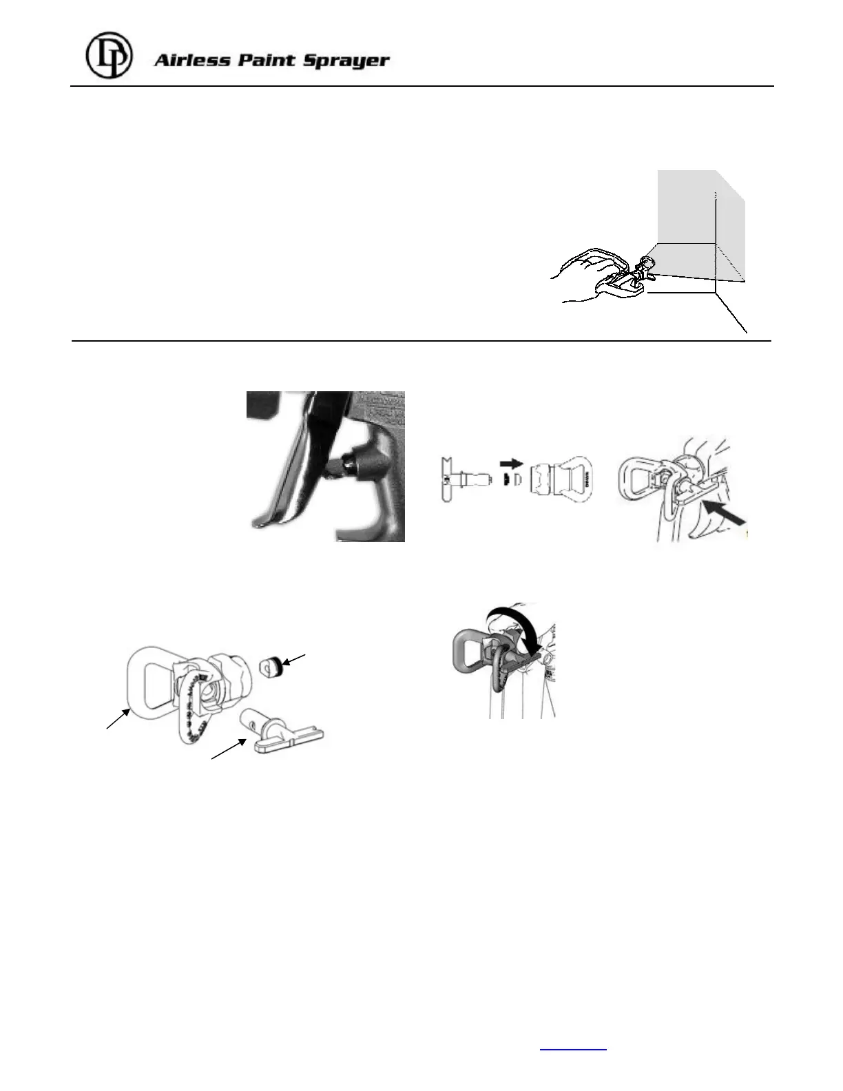 7. When taking a short break from painting (up to 1 hr.), lock the spray gun trigger OFF, reduce pressure