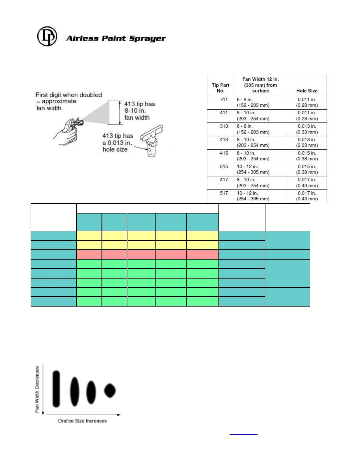 maximum productivity and a quality finish. When tip wears, the hole(orifice) size increases and spray