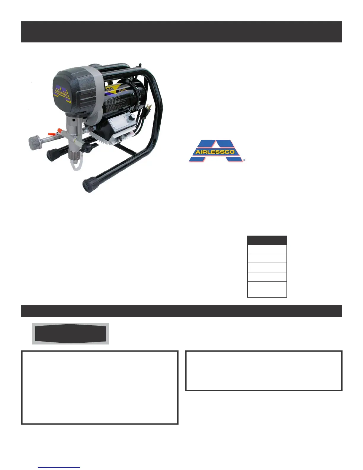 All Service Procedures to be performed by an Authorized Airlessco Service Center ONLY.
