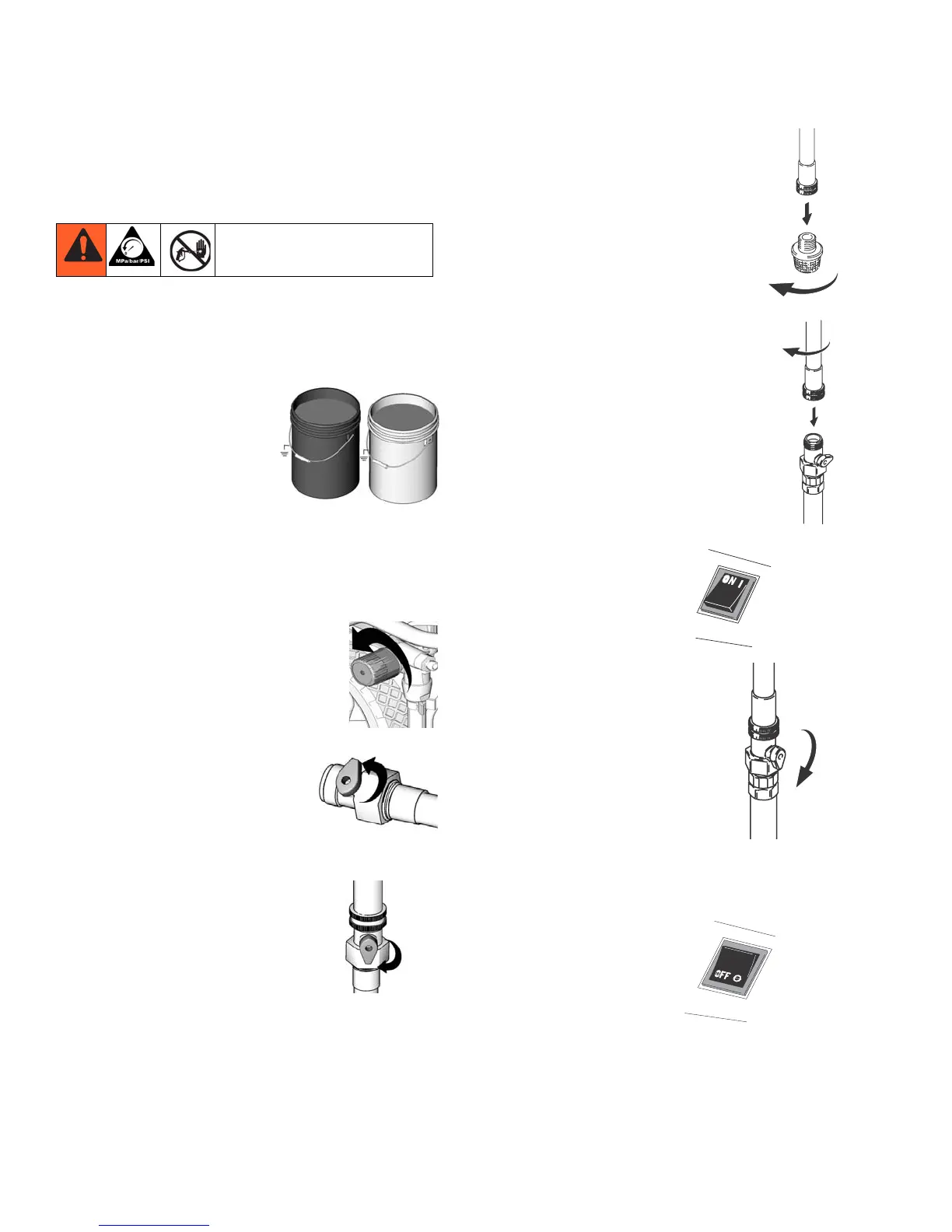 4. Lift suction tube and prime tube from paint pail. Let