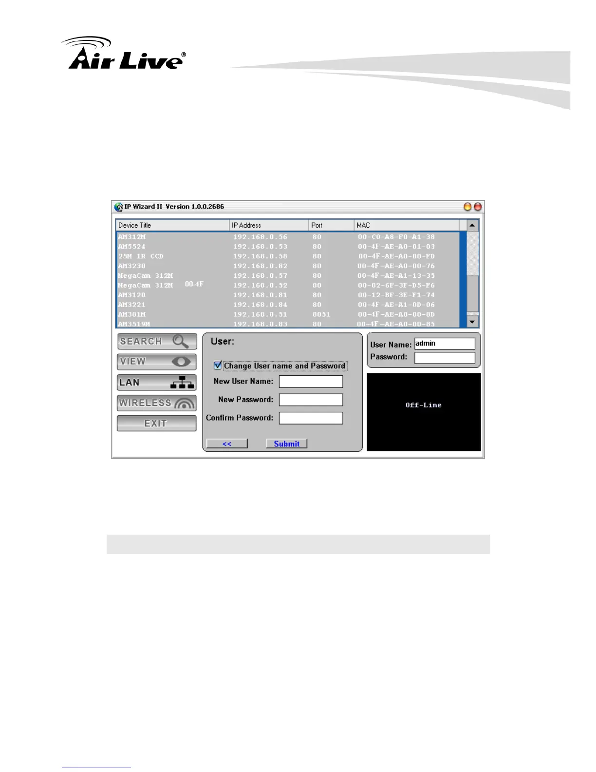 If you like to change username and/or password of the device, just click the