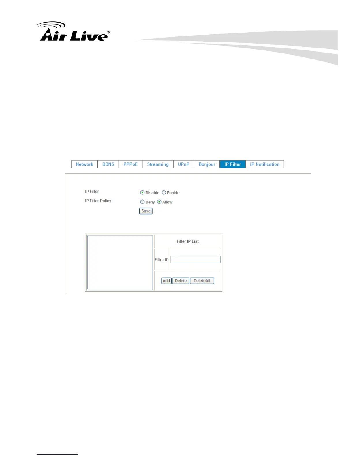 To enable or disable the IP filter function here.