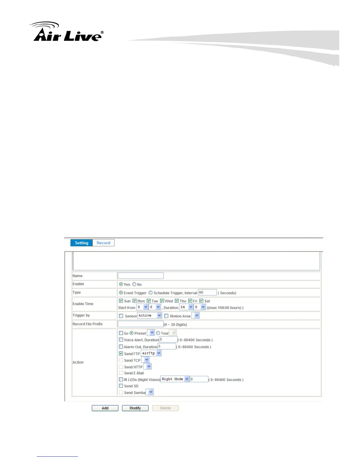 4. Action : Send FTP (Add in Event Server -> FTP Server page)