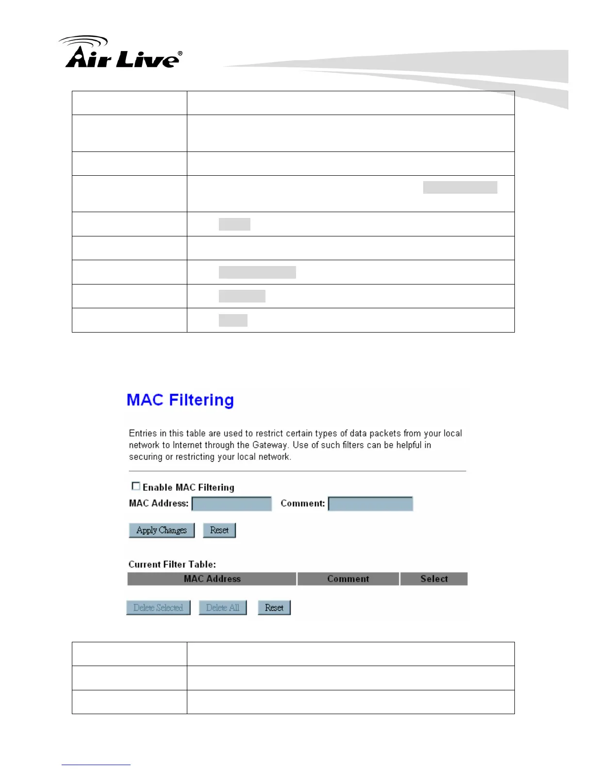 Enable MAC Filtering Check to enable MAC filtering function.