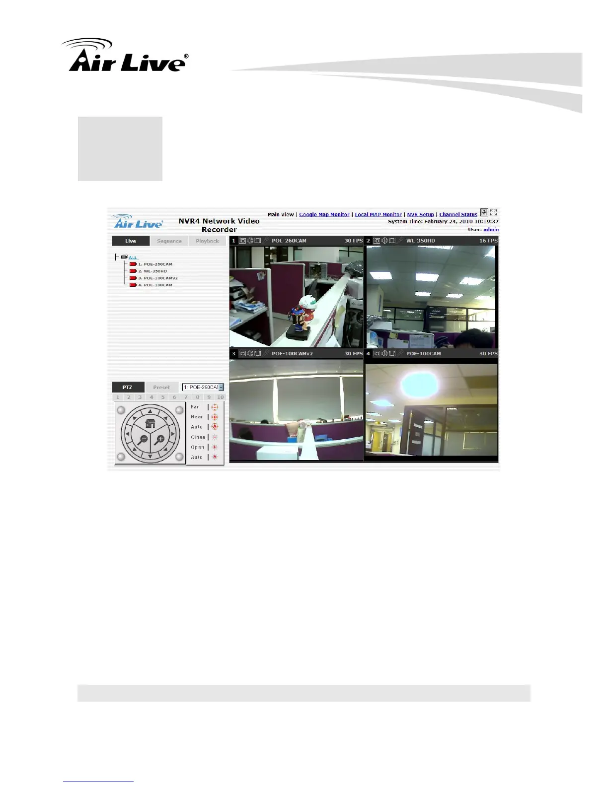 The “Live View” page provides the following functions: