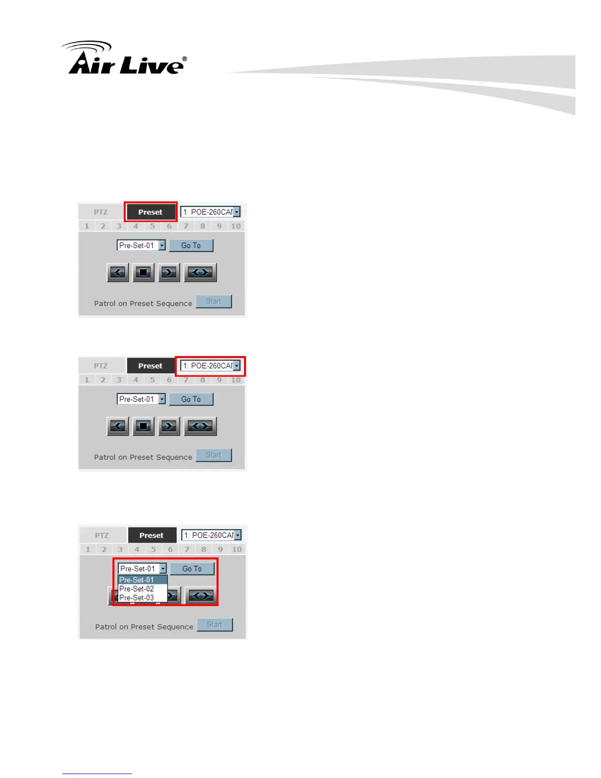 Available PTZ preset points of the selected camera will be listed in the drop- down list