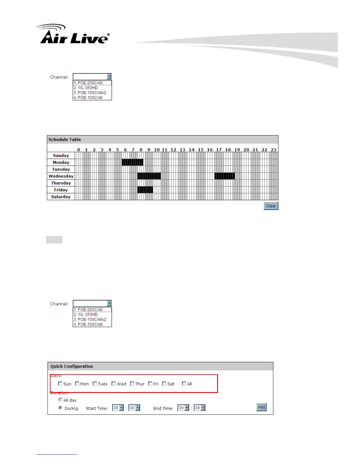 c. After the schedule is set, please press the “Apply” button for save the configuration.