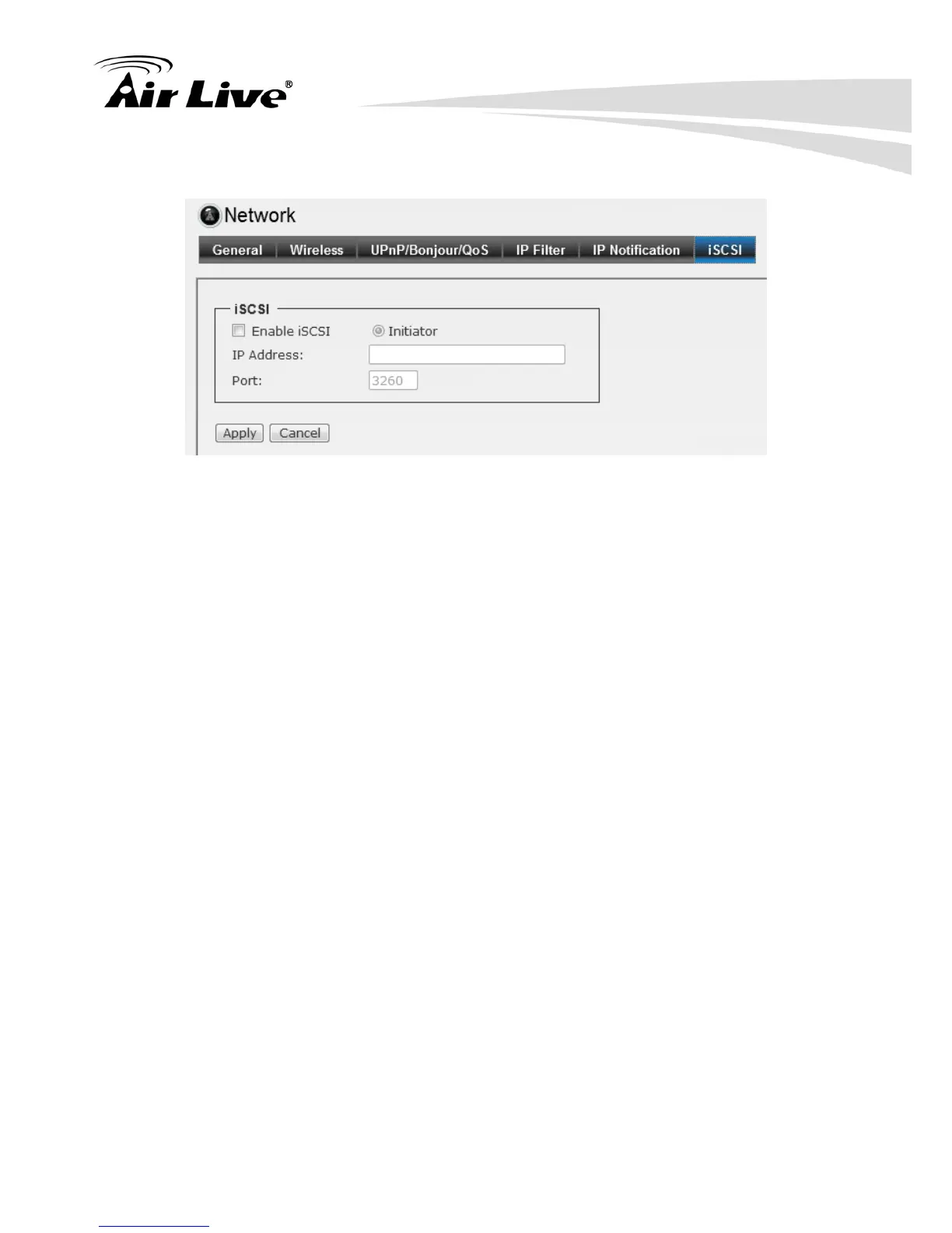 Enable the iSCSI and key-in server IP address and Port number. The disk of the server