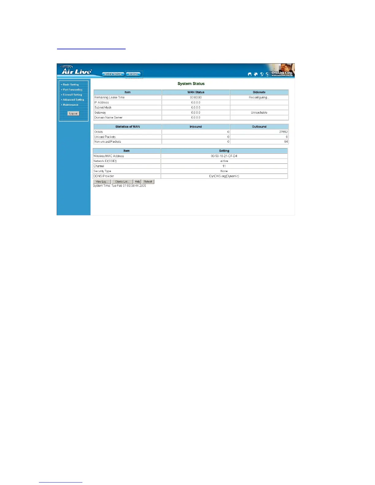 type this product’s IP address in the Location (for Netscape) or Address (for IE) field and press ENTER. For