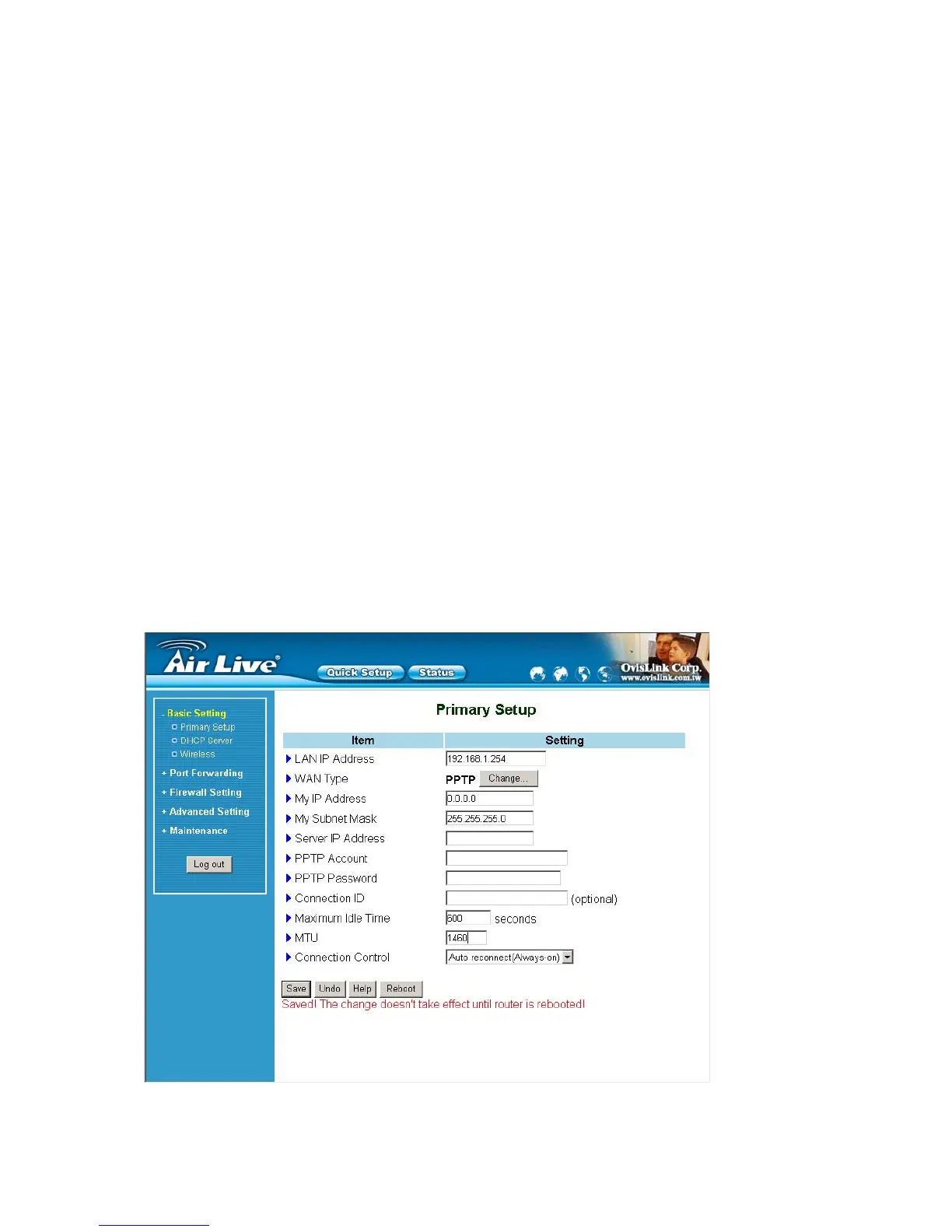 3. PPTP Account and Password: the account and password your ISP assigned to you. If you don't