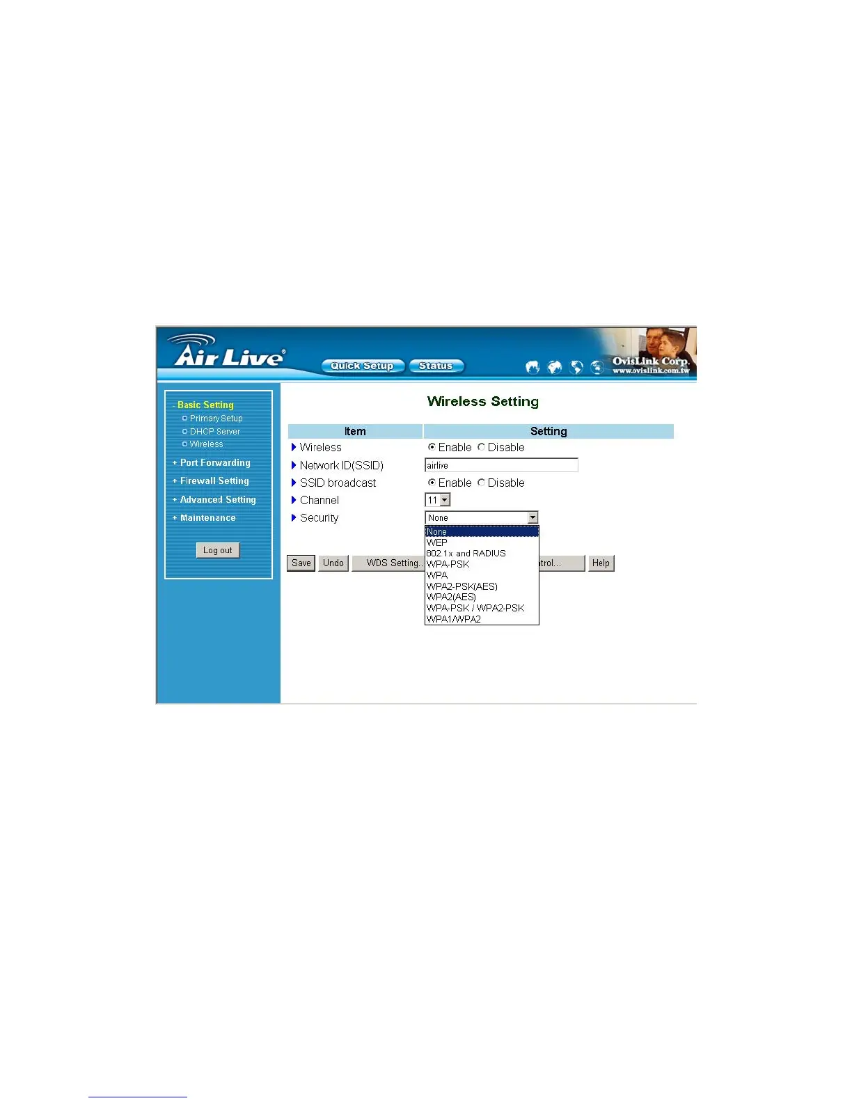 4. WEP Security: Select the data privacy algorithm you want. Enabling the security can protect your data