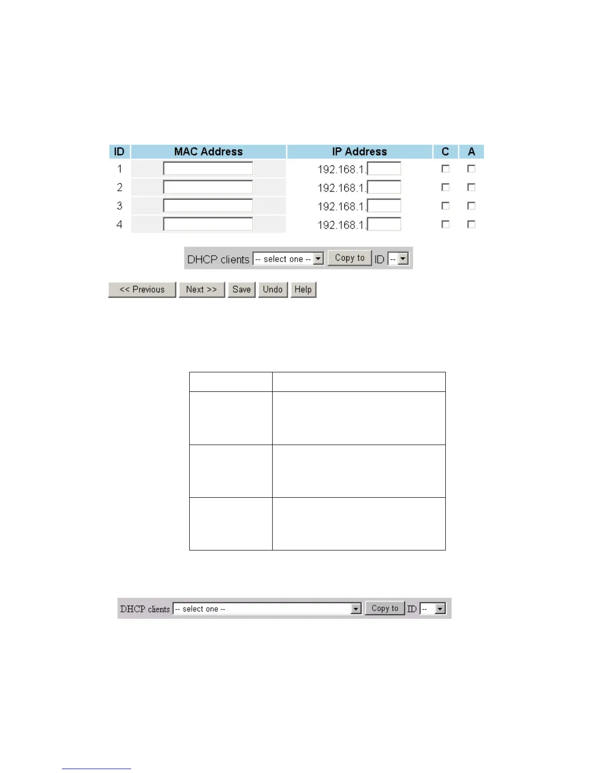 "Control table" is the table at the bottom of the "MAC Address Control" page.
