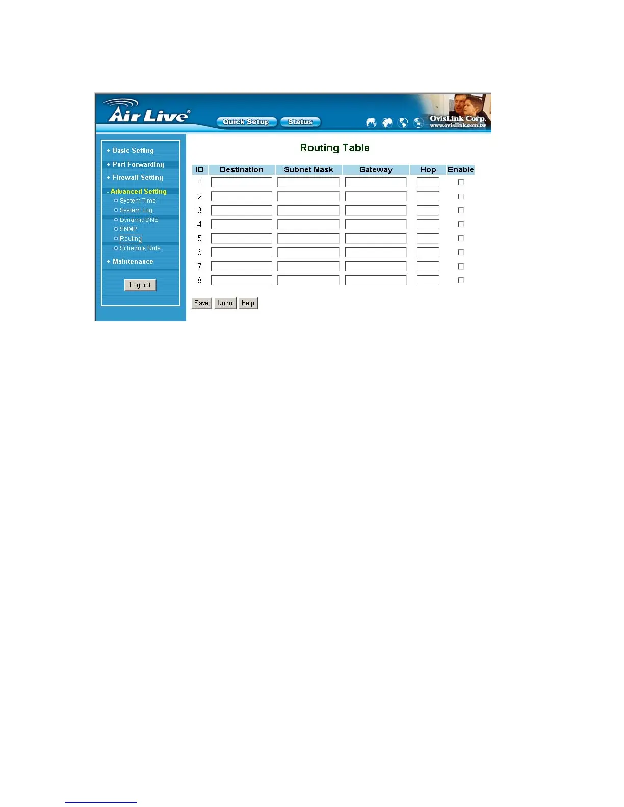 Static Routing: For static routing, you can specify up to 8 routing rules. You can enter the destination IP address,