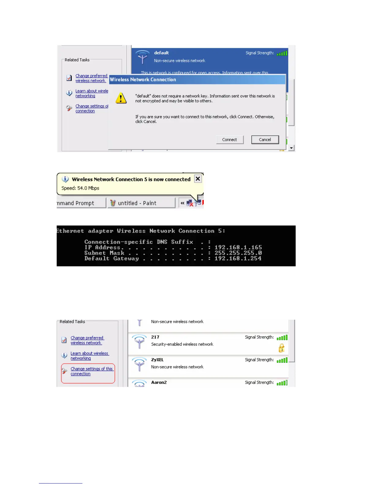 If SSID is default and click “Properties” to check if the driver of wireless client supports AES encryption.