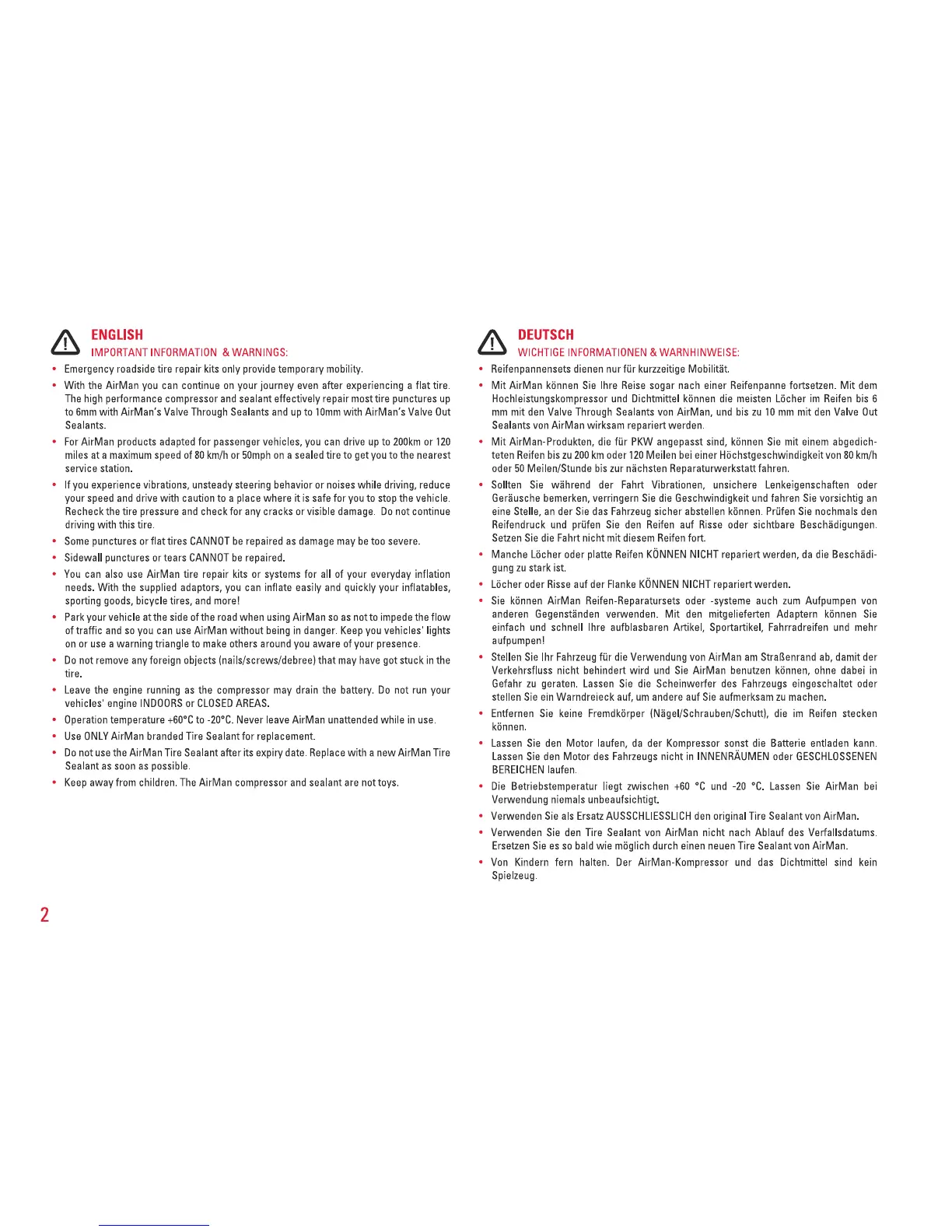 AirMan ResQ - Important Information and Warnings