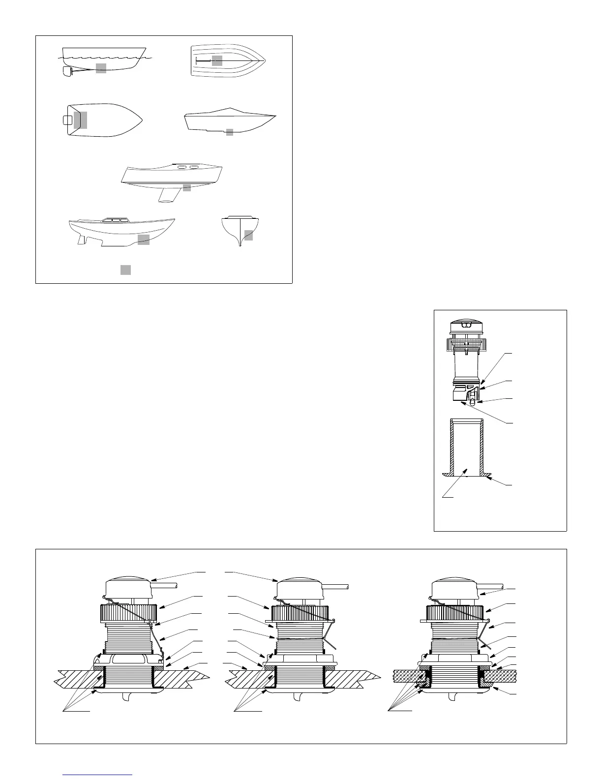 • Fin keel sailboats—Mount on or near the centerline and forward of