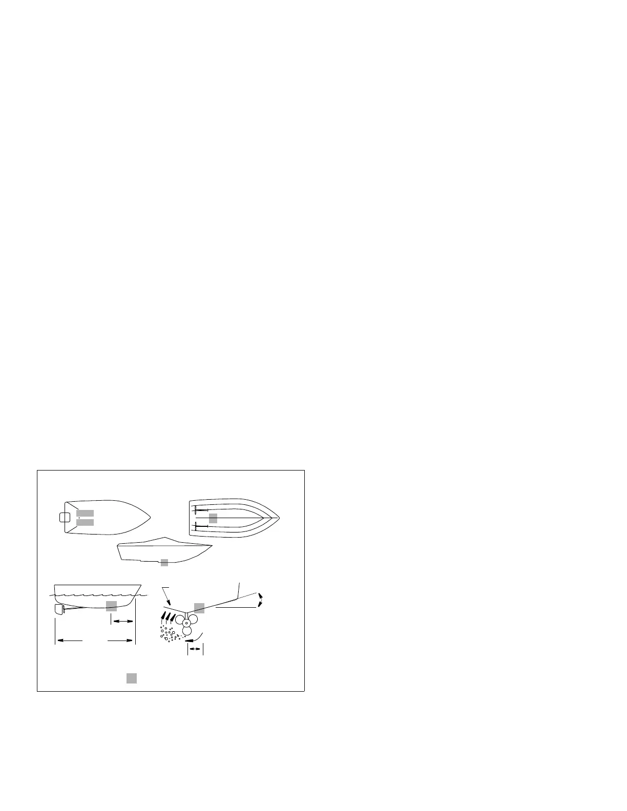 • Planing hull powerboat—Mount well aft near the centerline
