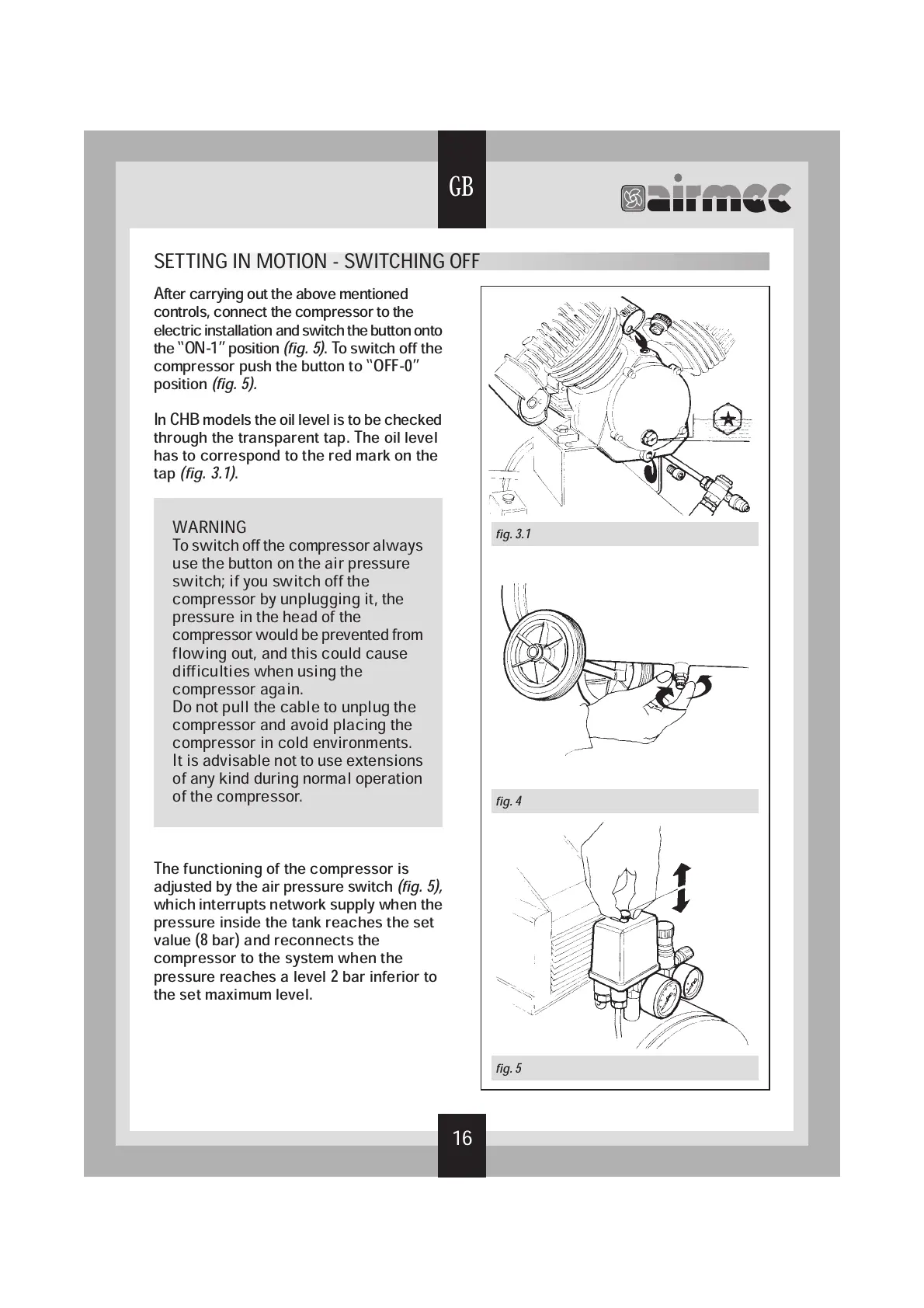 compressor push the button to “OFF-0”