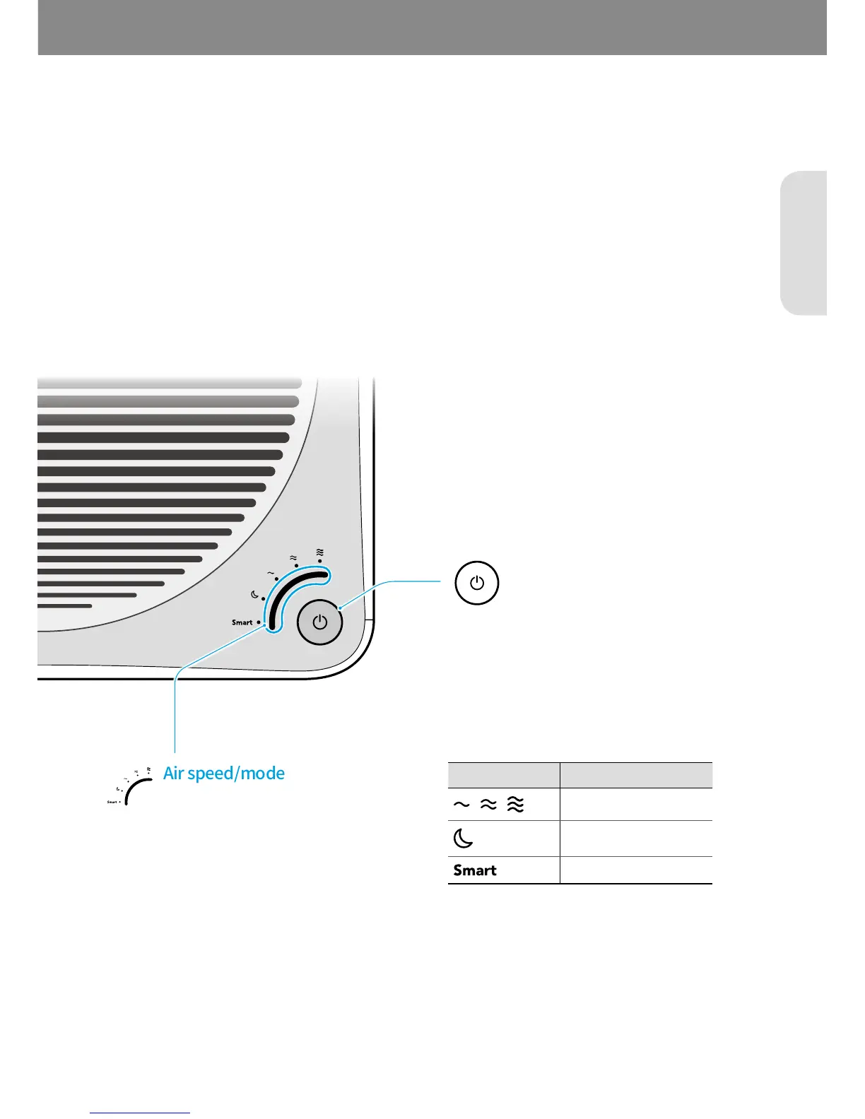 Touch the sensor to select the air speed or set