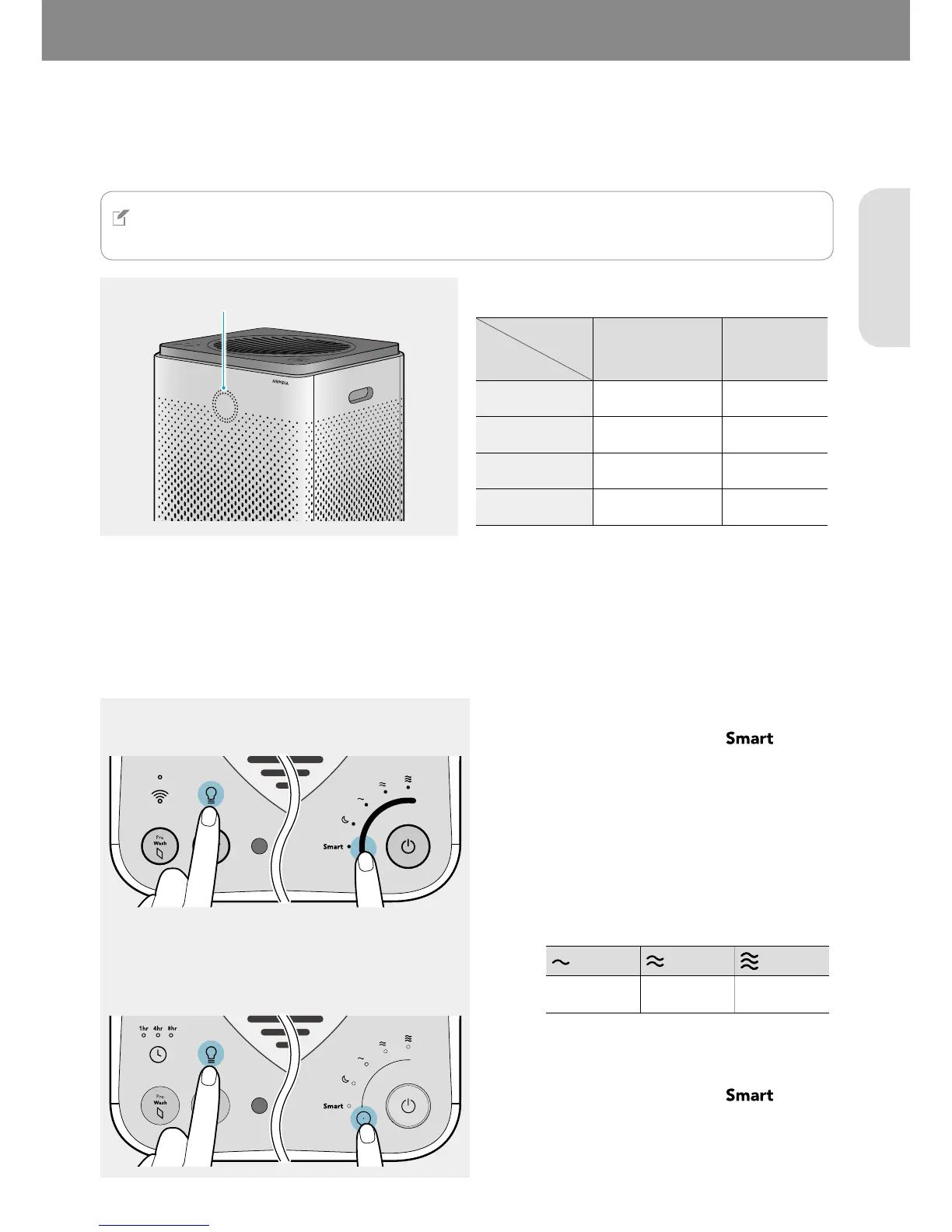 You can easily check the current air quality around the product using the air quality indicator on the front of the