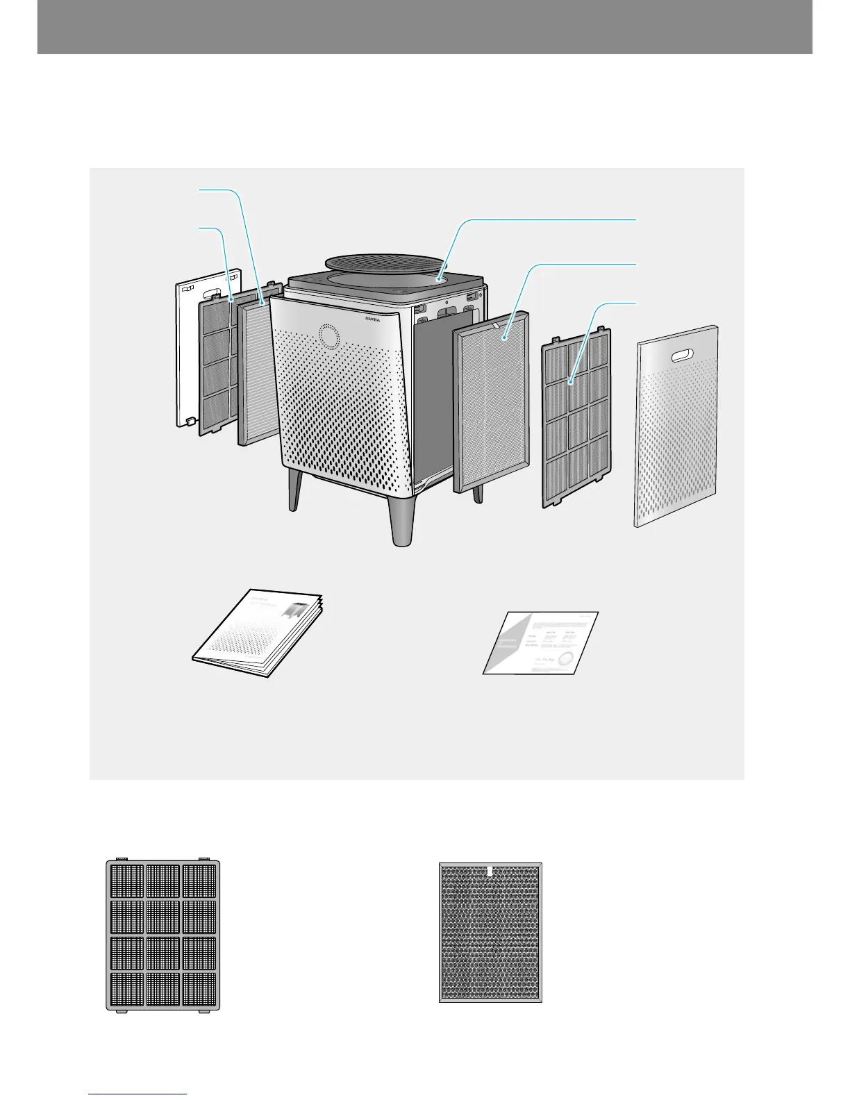 Before installing the air purifier, make sure all of the components are present. If any items are missing or damaged,