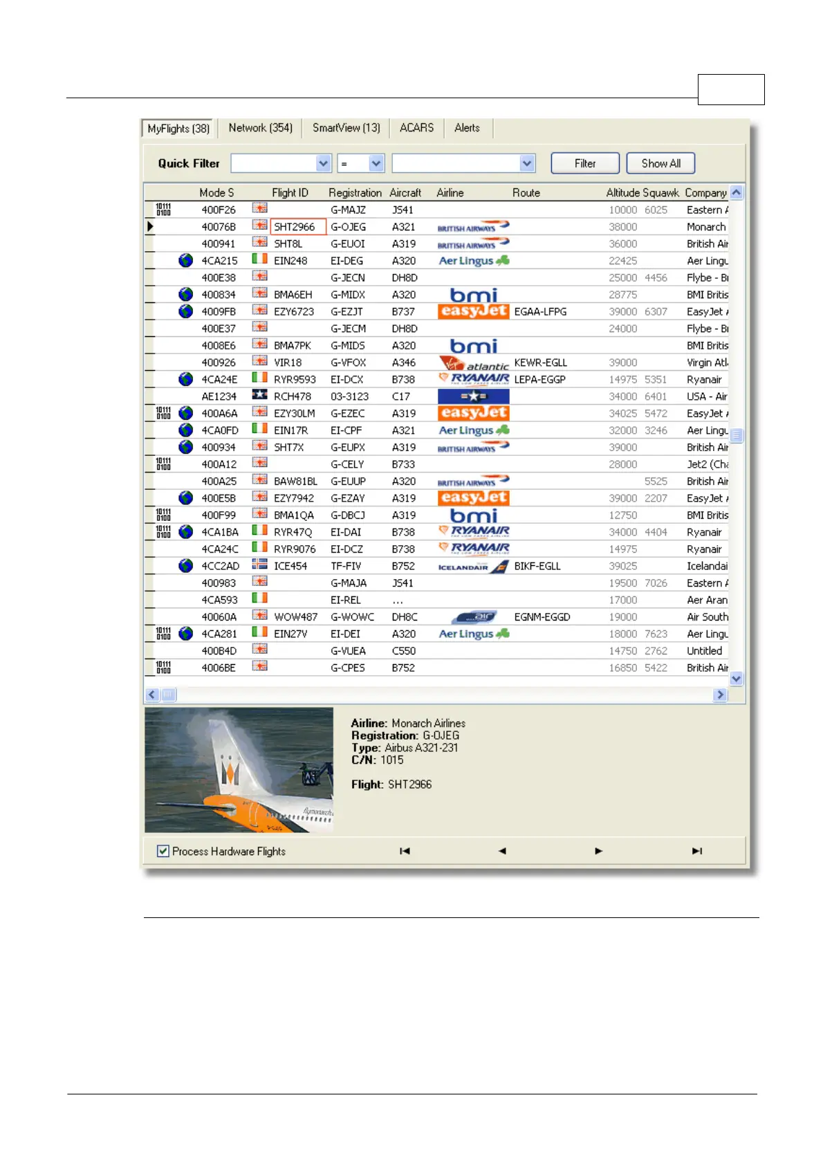 At the top you have a Quick Filter function. By default the filter is turned off and all flights are shown.