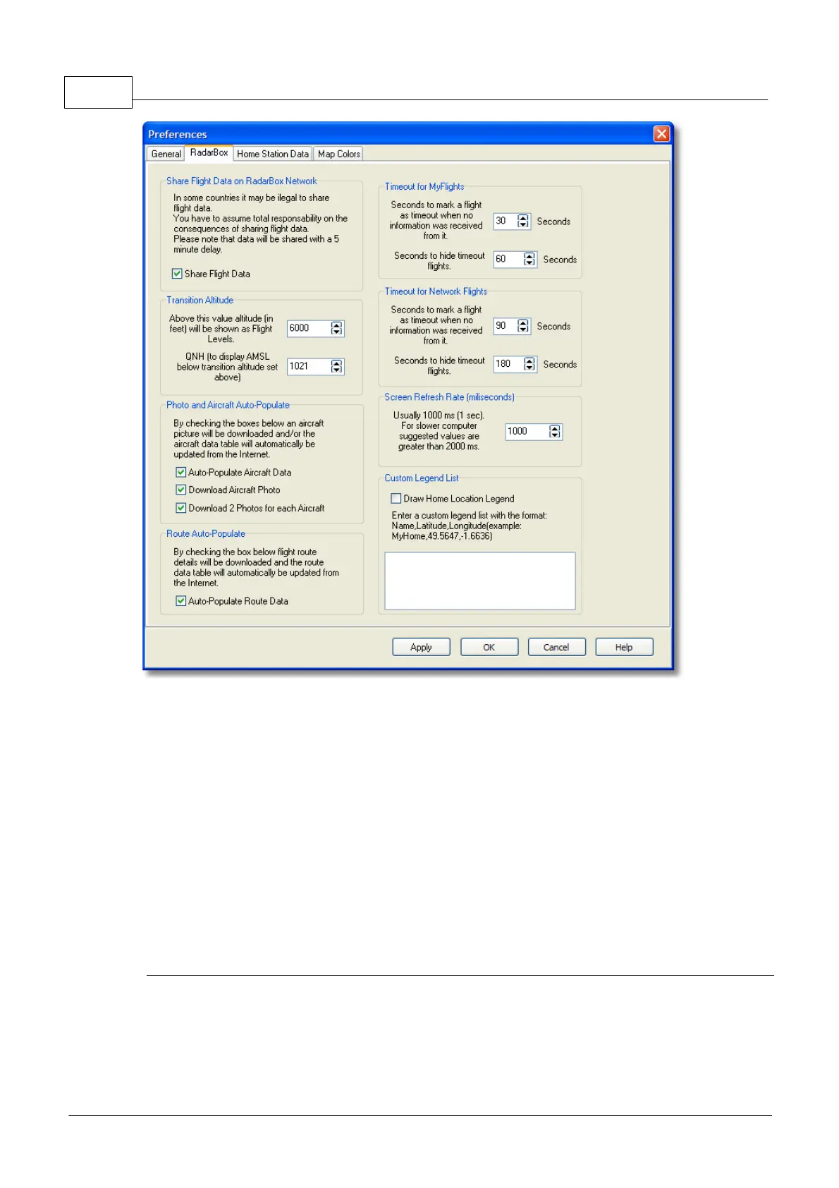 · Timeout for MyFlight: set how long aircraft will be displayed after the signal is lost. Timeout