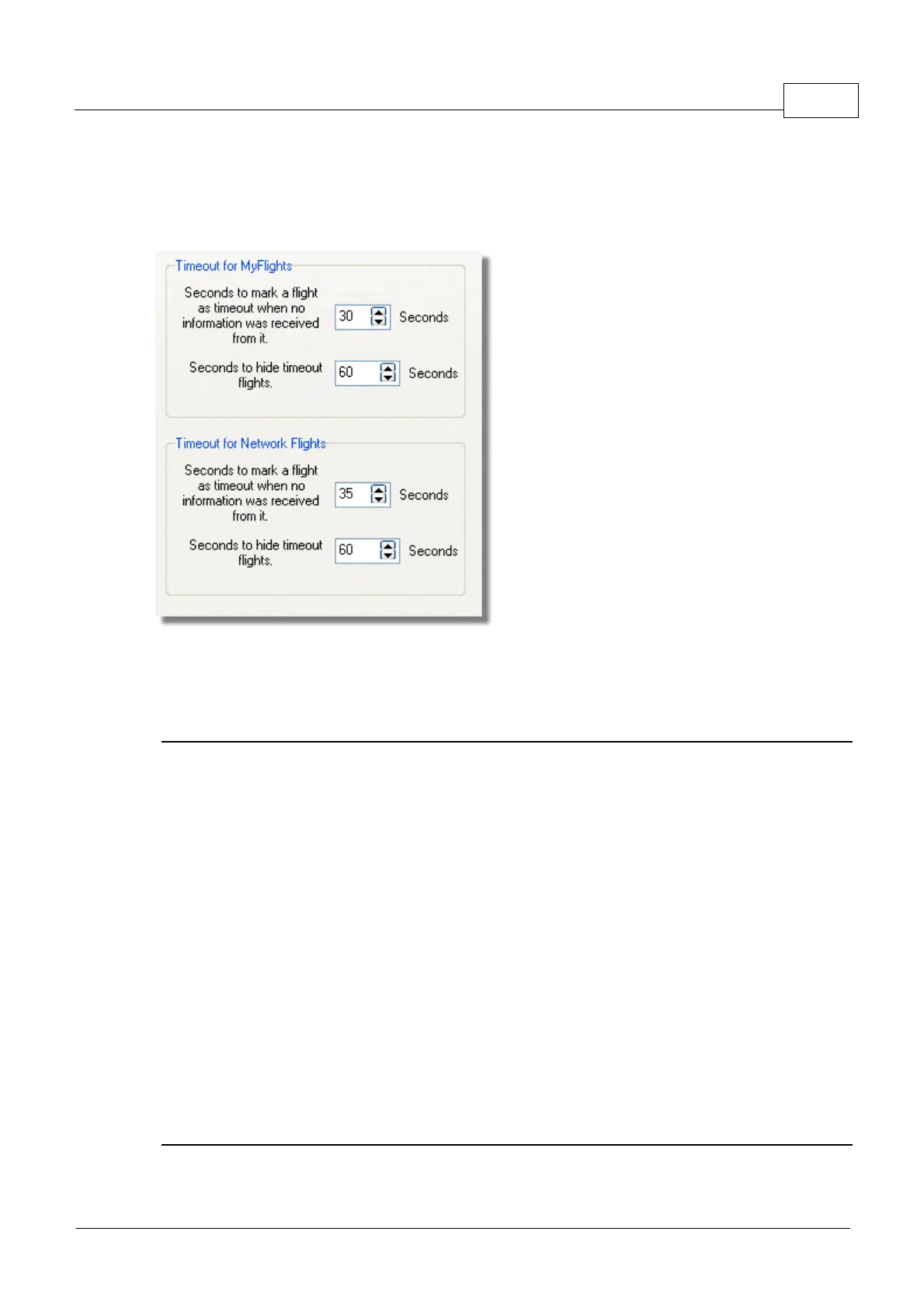 The Timeout settings are arranged in 2 groups, MyFlight settings and Network Flight settings. The