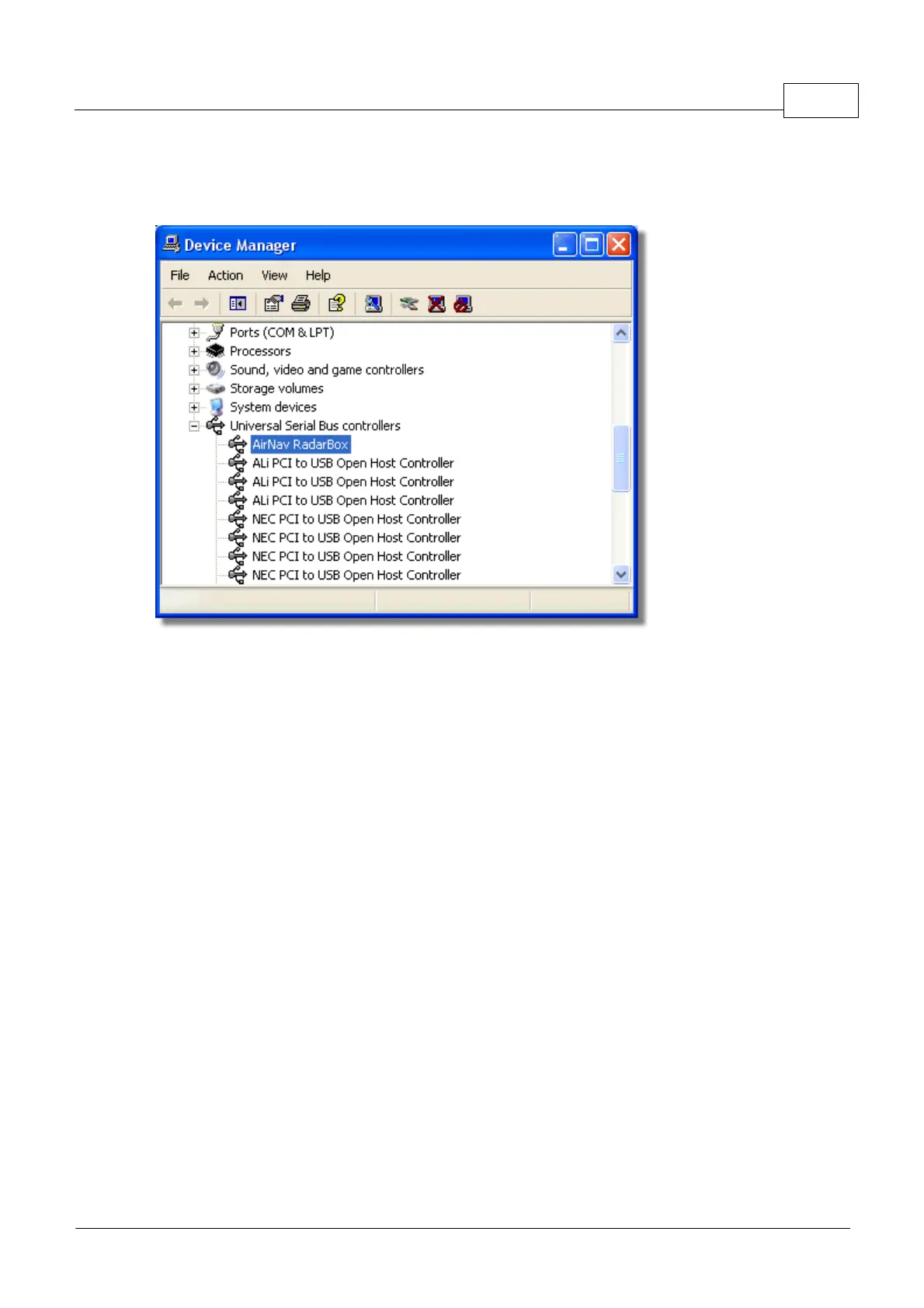 Control Panel | System menu. Under Universal Serial Bus Controllers, look for the AirNav RadarBox