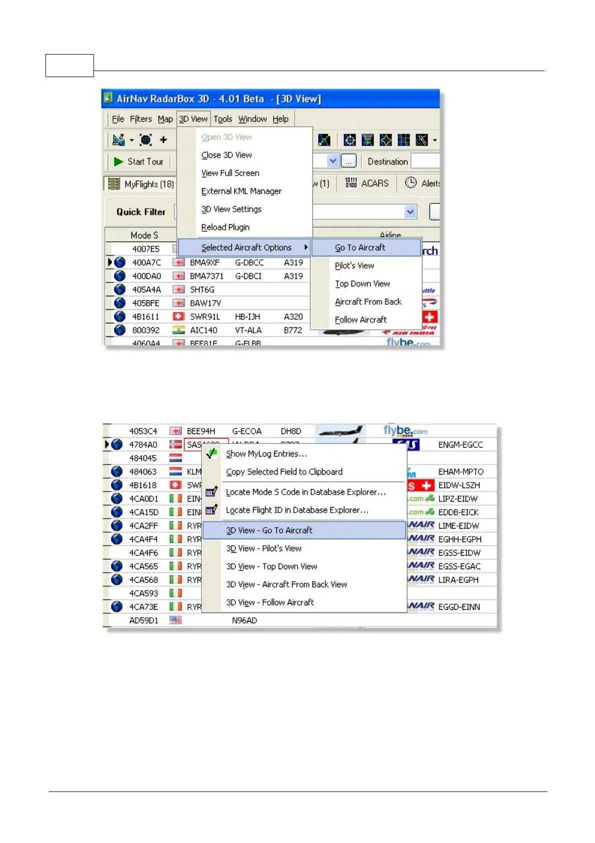 aircraft. Adjust the display time of the pop-up box using the 3D View Settings.