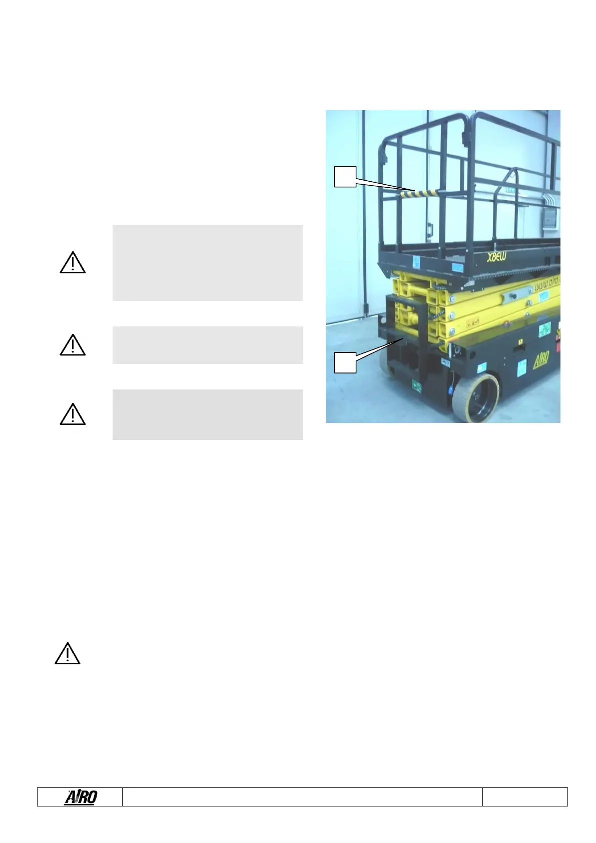 ▪ Release the emergency stop button on the platform control panel (see previous paragraphs).