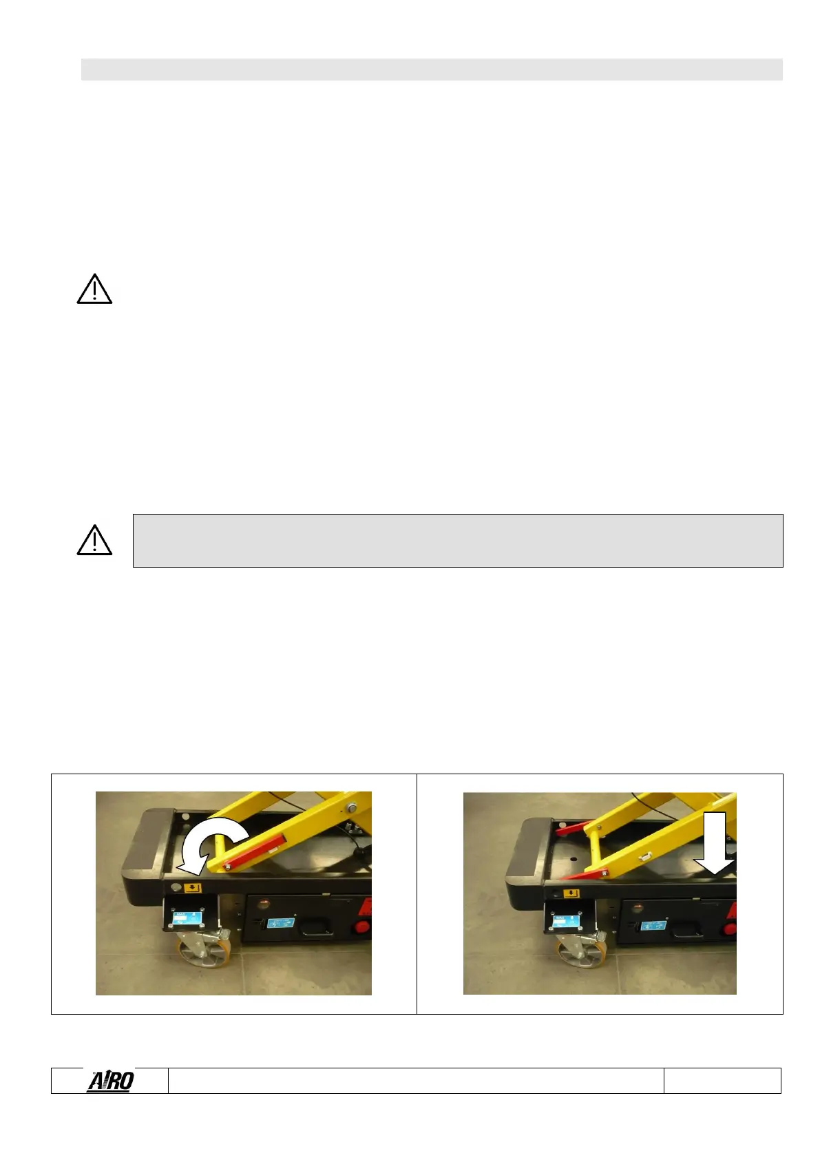 operations inside the lifting structure, check that this is off-line in order to avoid accidental lowering of