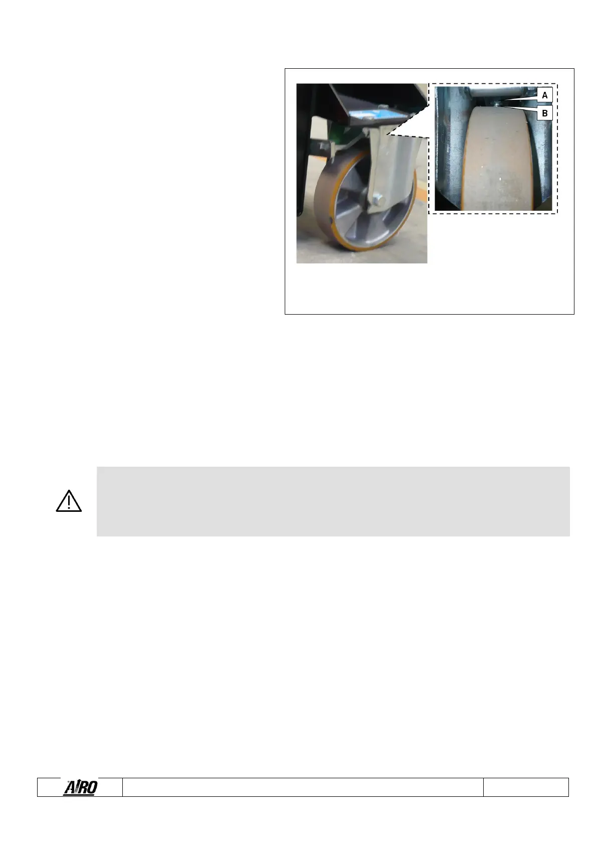 Manually unscrew braking pin B bringing it near the wheel, making sure that it is still possible to move the machine by pushing