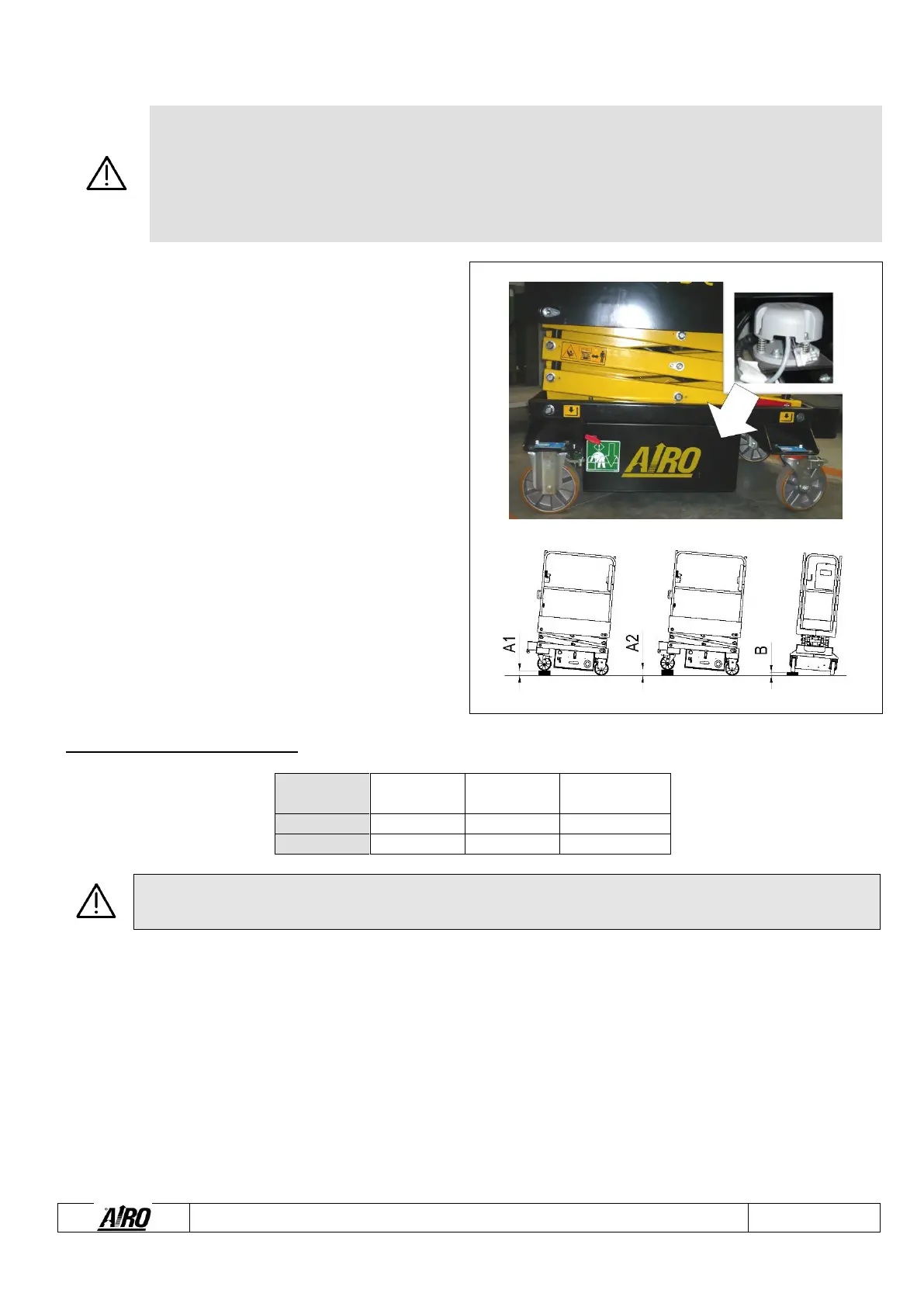WARNING! The dimensions of shims A1, A2 and B refer to max. allowed inclination as indicated in table