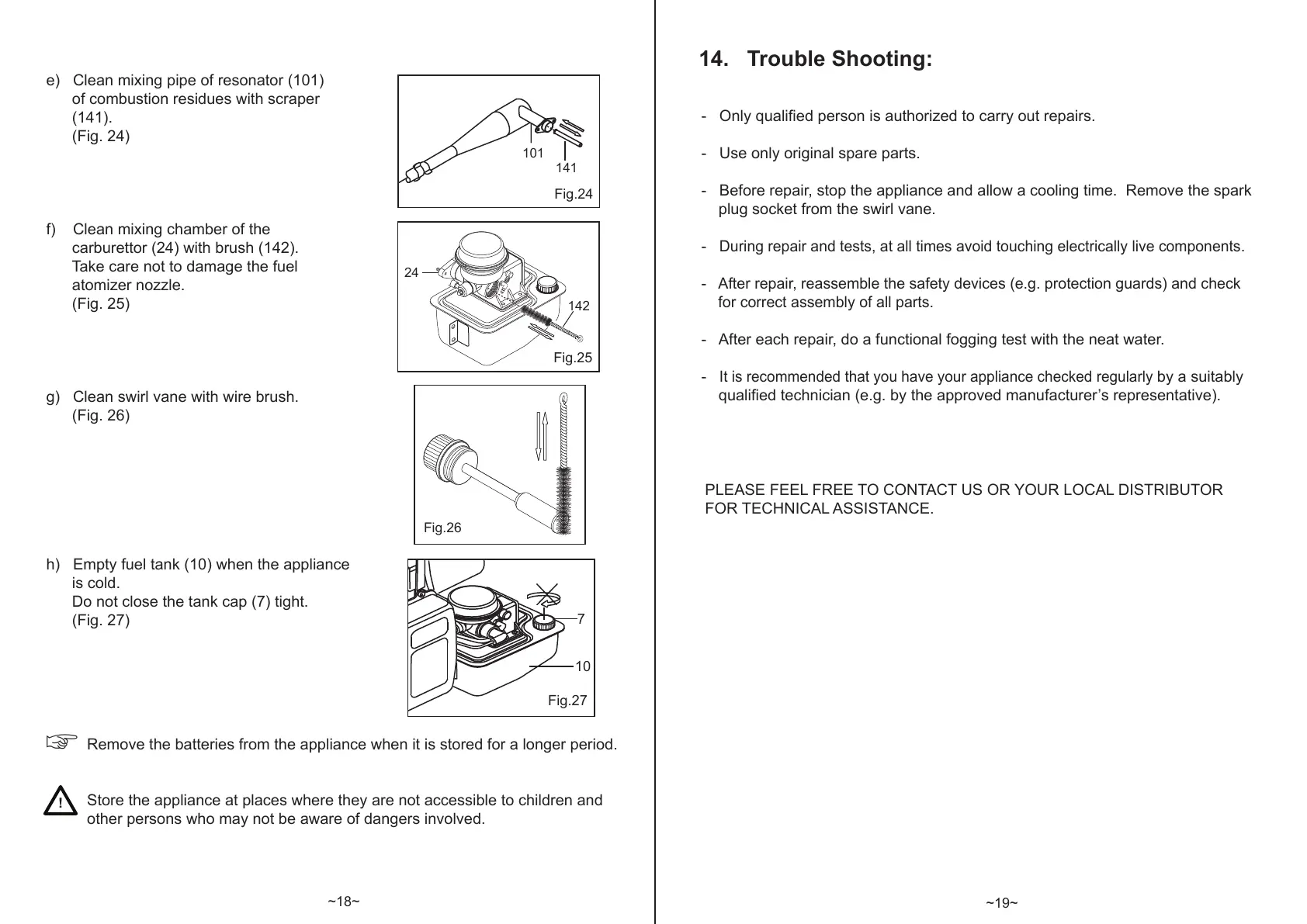 - Before repair, stop the appliance and allow a cooling time. Remove the spark