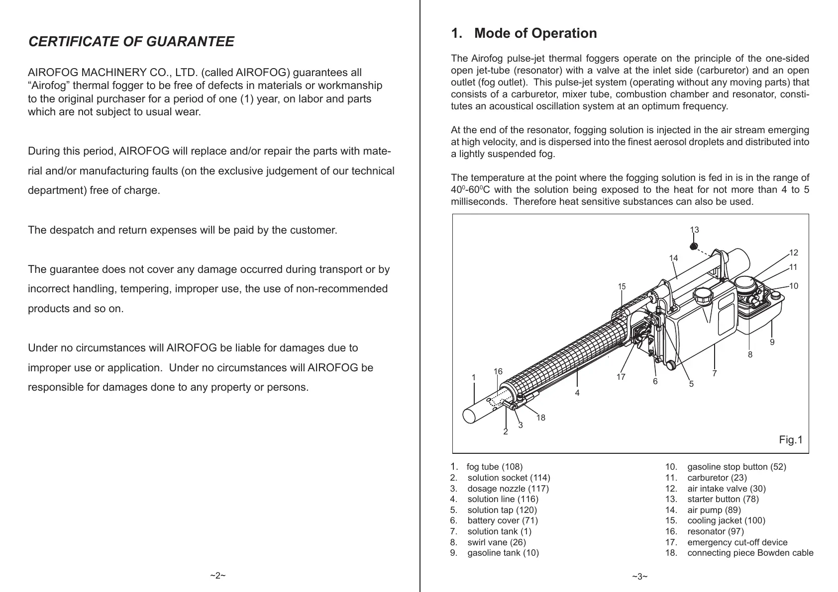 During this period, AIROFOG will replace and/or repair the parts with mate-