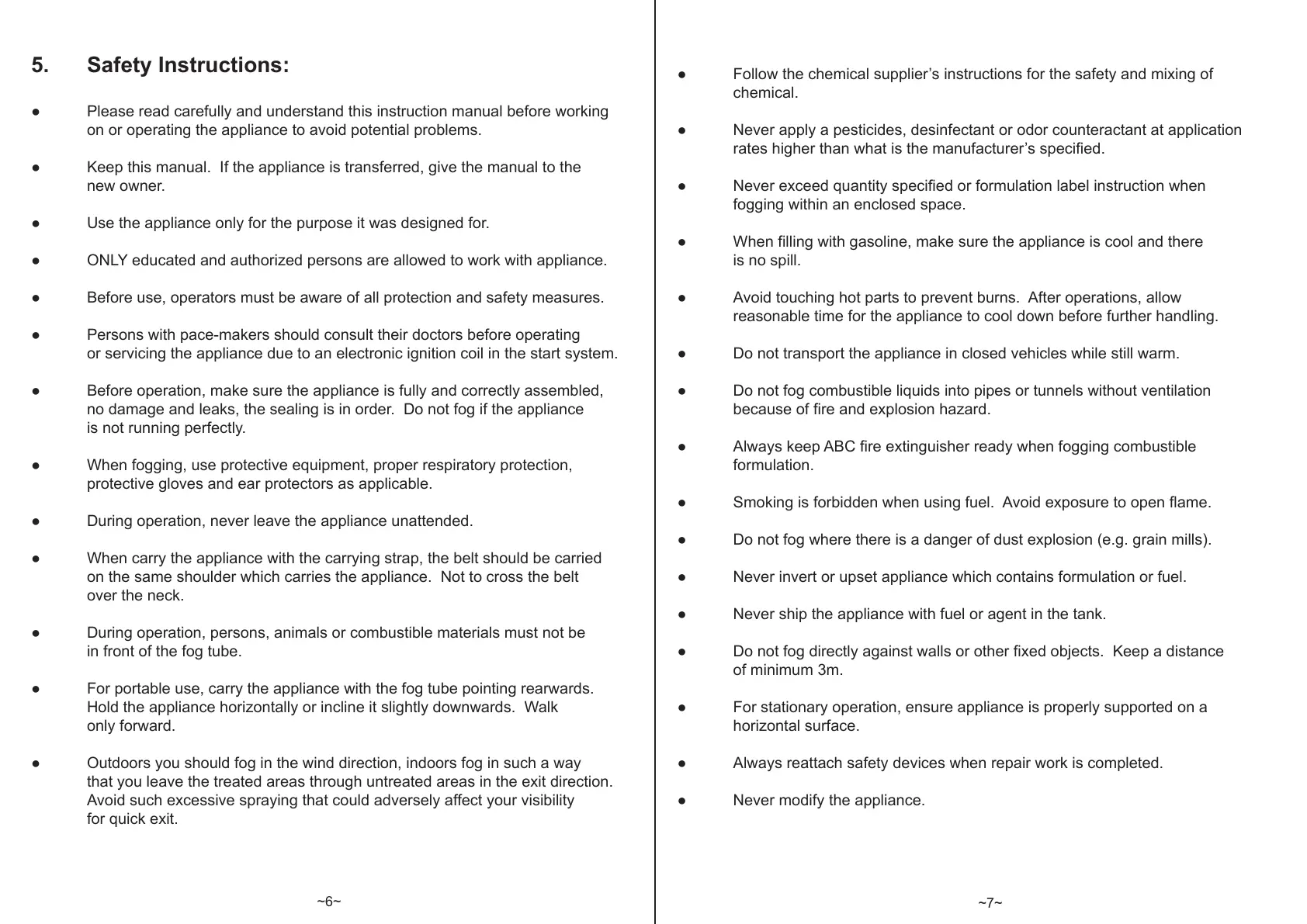 5. Safety Instructions: