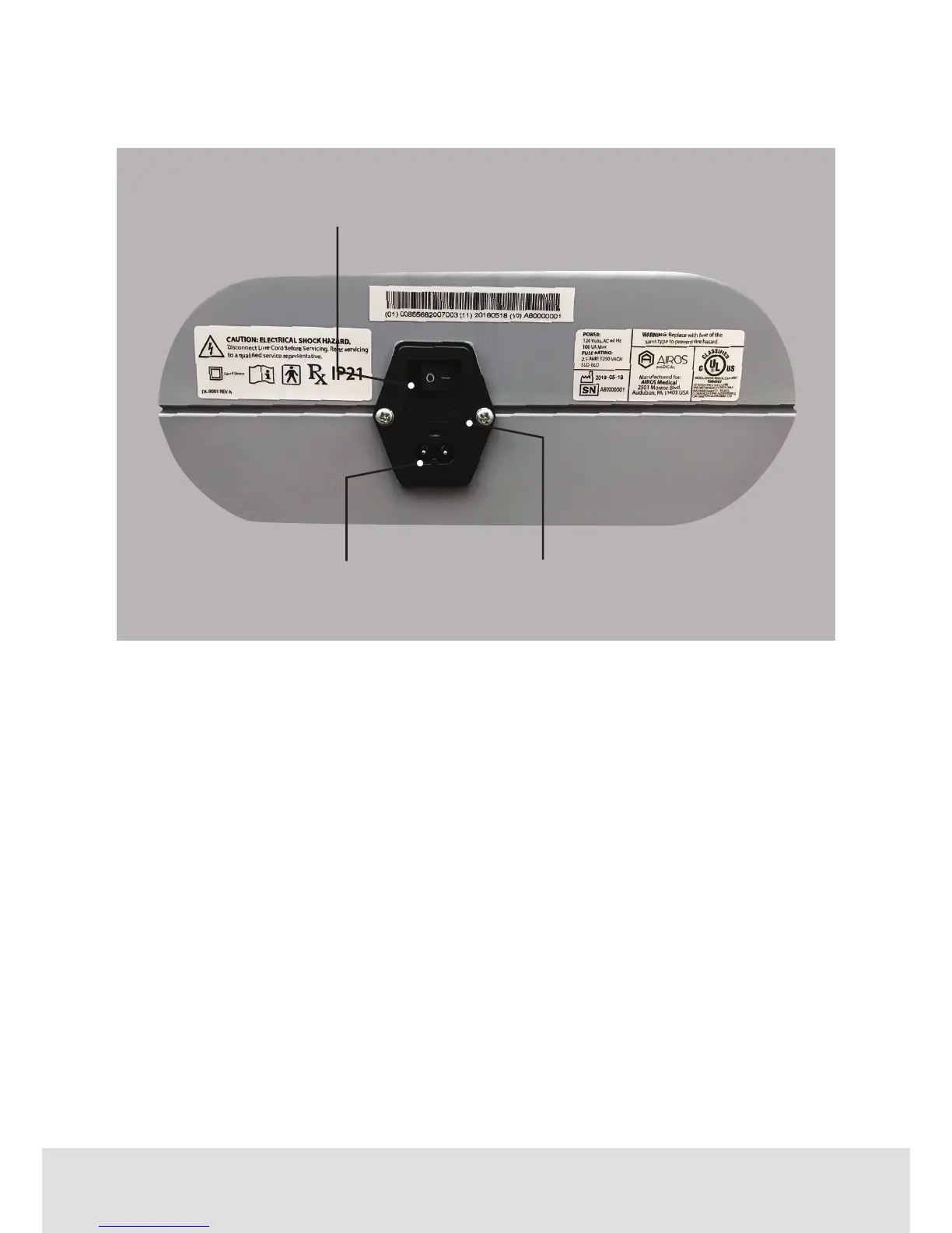 AIROS 8 - Device Panels: Back Panel; Main Power Switch, Fuse, and Power Plug