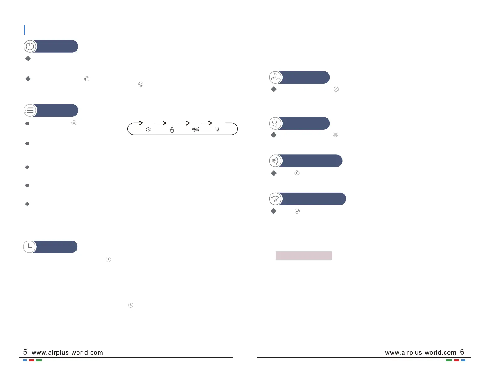 Wind speed setting: Press " "to select "high" → "mid" → "low" → "auto" wind speed, and select in