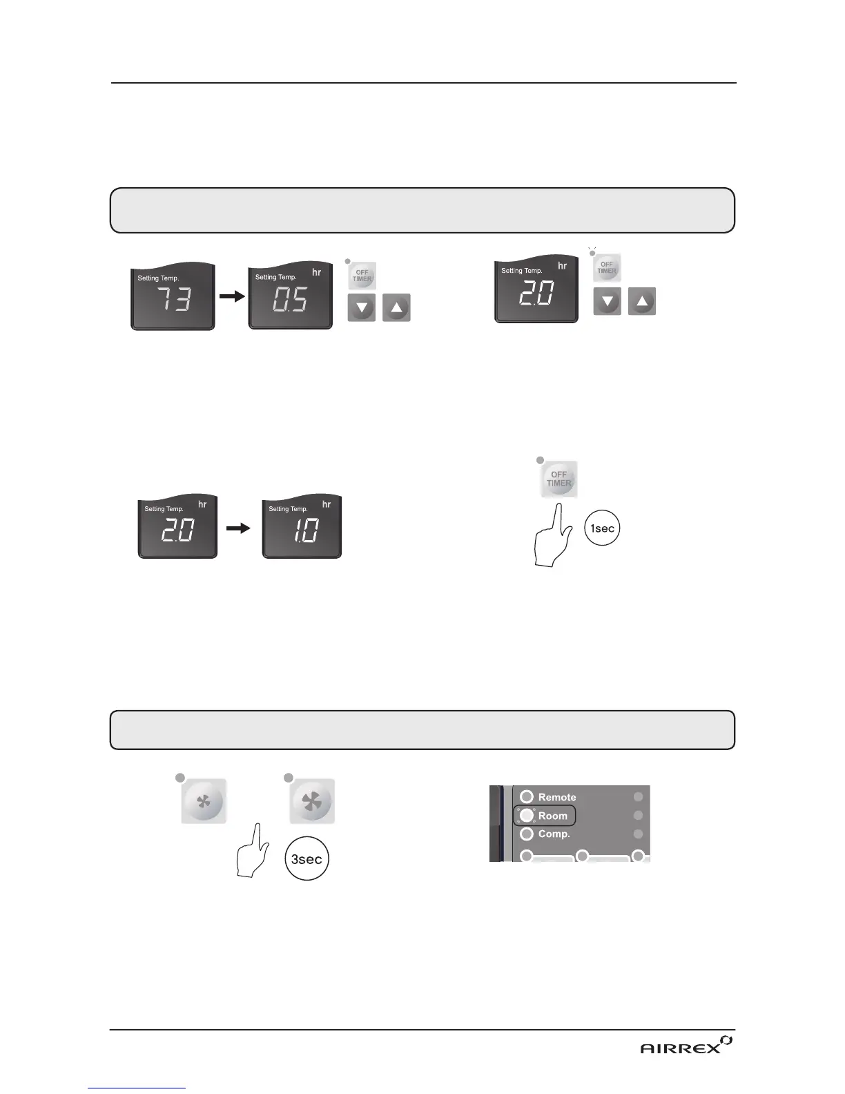 Quand le compresseur s'arrête plus de 3 minutes en "Room Temp Mode", ", le ventilateur est coupé