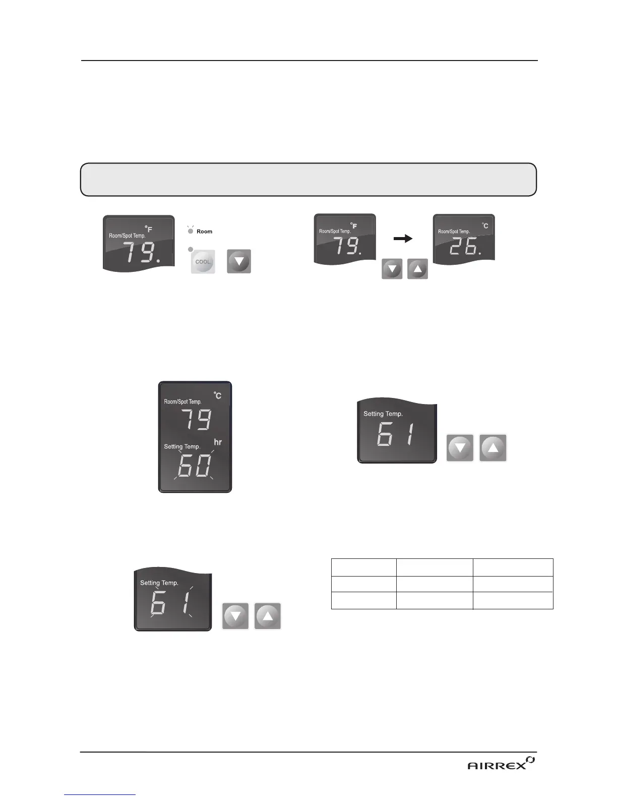 ·50℉ en modo de punto. ·60℉ en modo de cuarto.