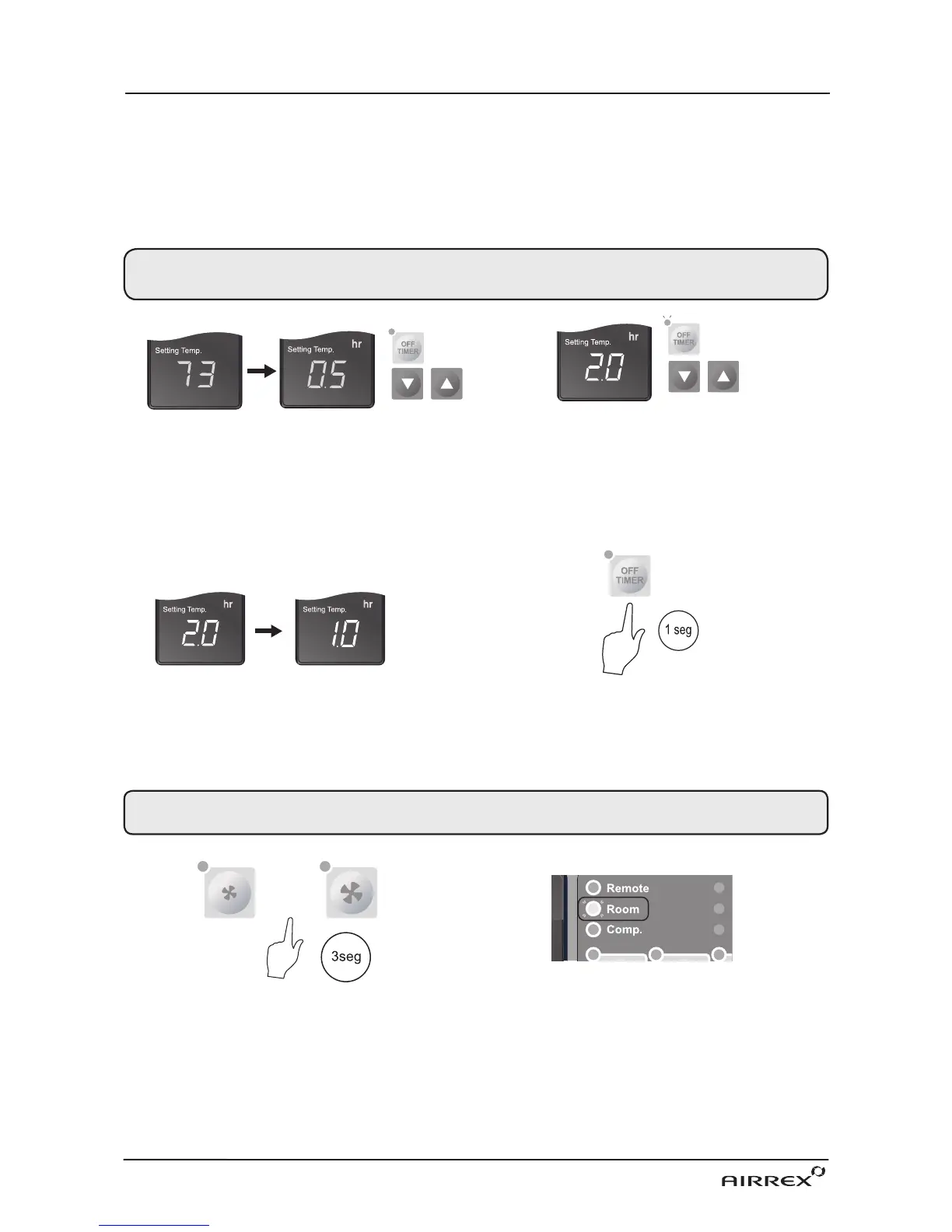Cuando el compresor se detiene por mas de 3 minutos en "modo de cuarto"- 'Room', el ventilador se apaga
