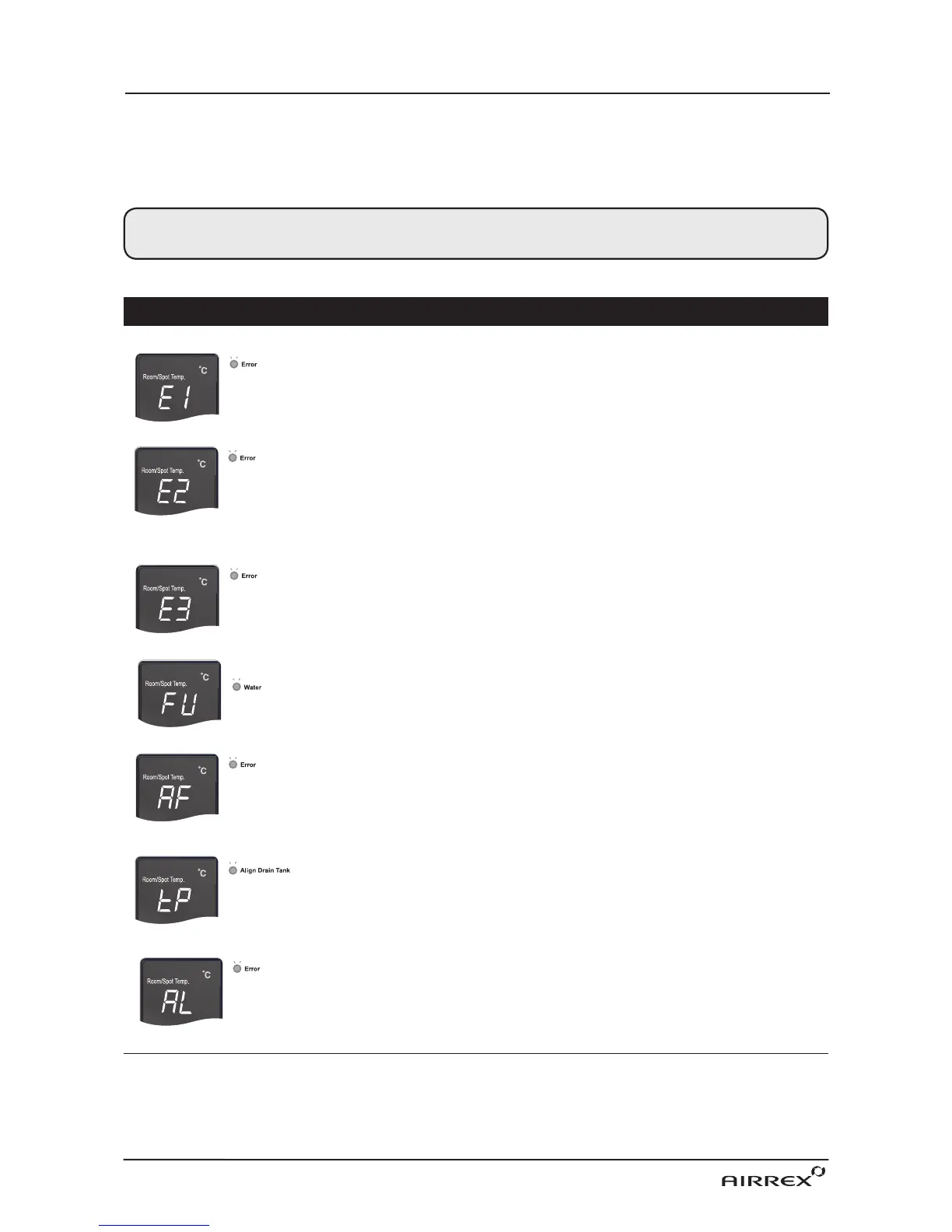 La lampara de alarma se activa si operaciones anormales ocurren. Un código de error de indica en el panel de