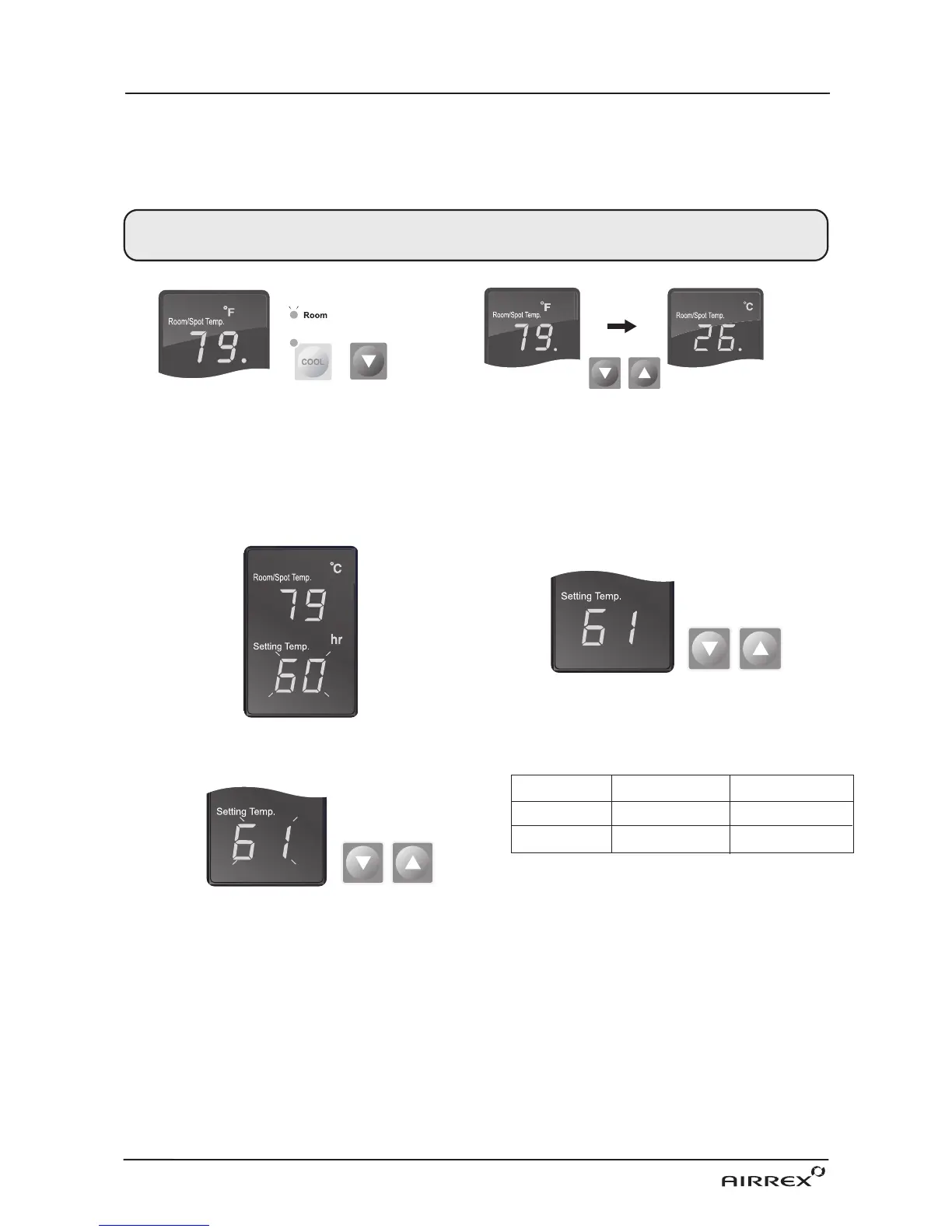 1. When power is ON, the setting temperature is displayed.
