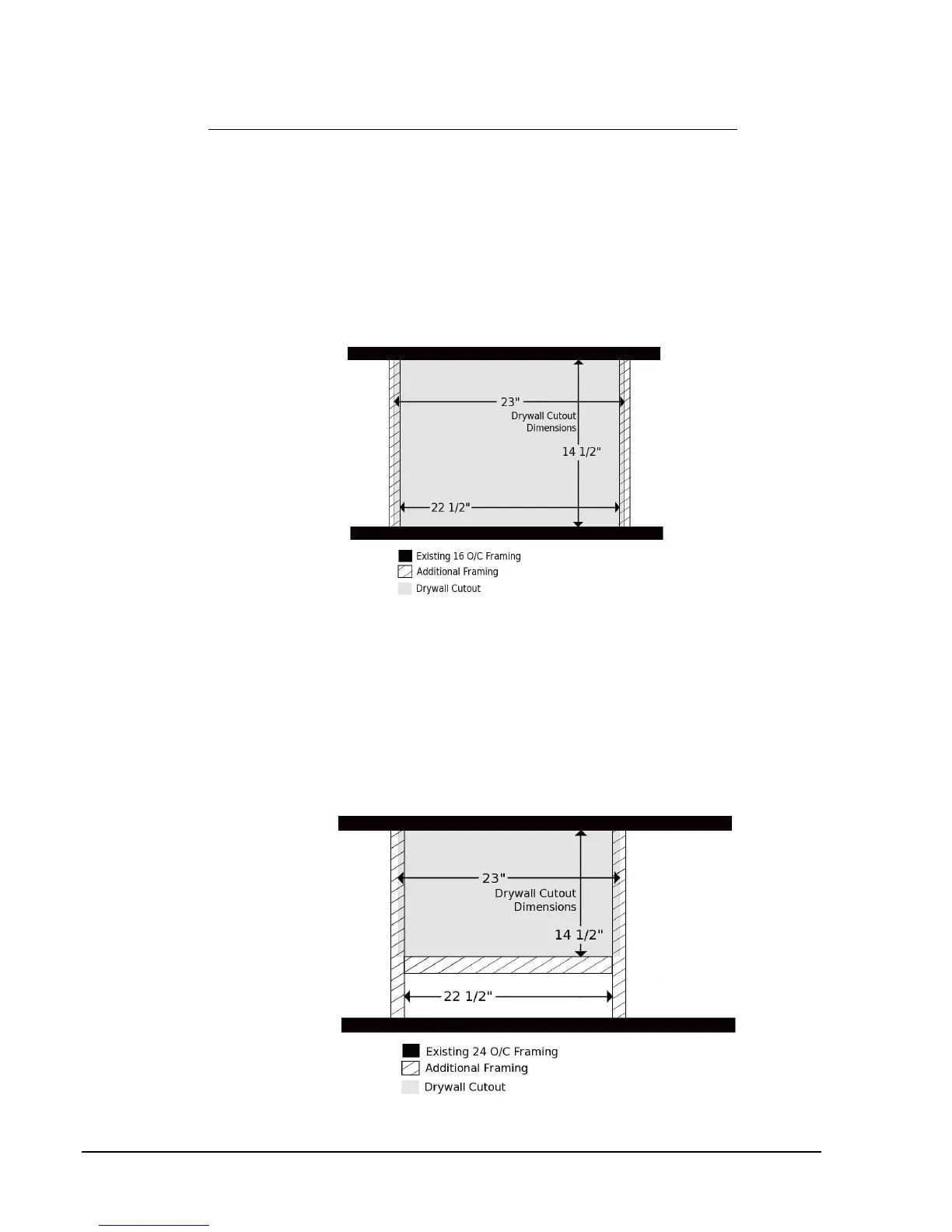 Step 1: Cut out the dry wall between the joists to create a 23” x 14½" rough opening.