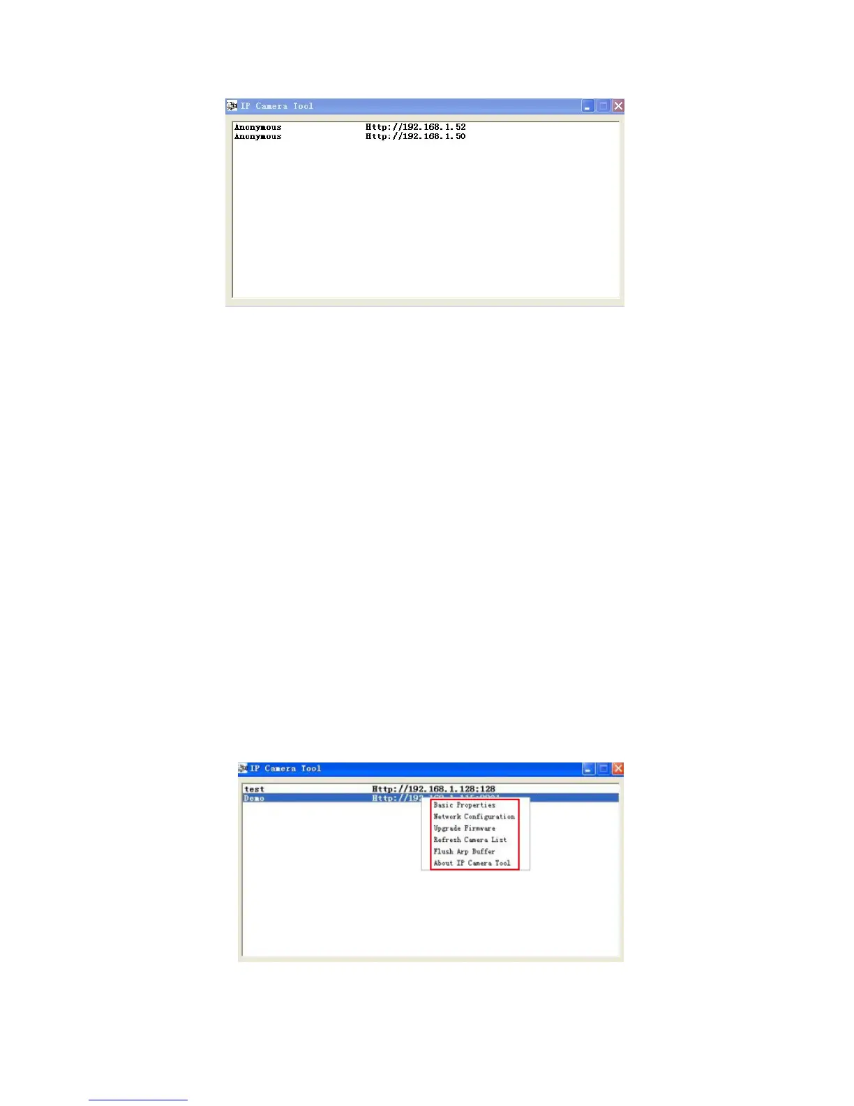 Choose the IP Camera list and Click the right mouse button, there are six options: (Figure 2.0).