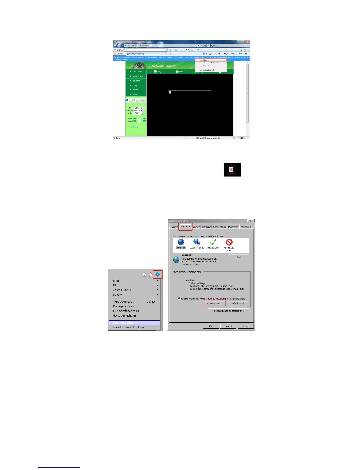 nge the ActiveX settings, open your IE browser, select Tools then Internet Options then Security