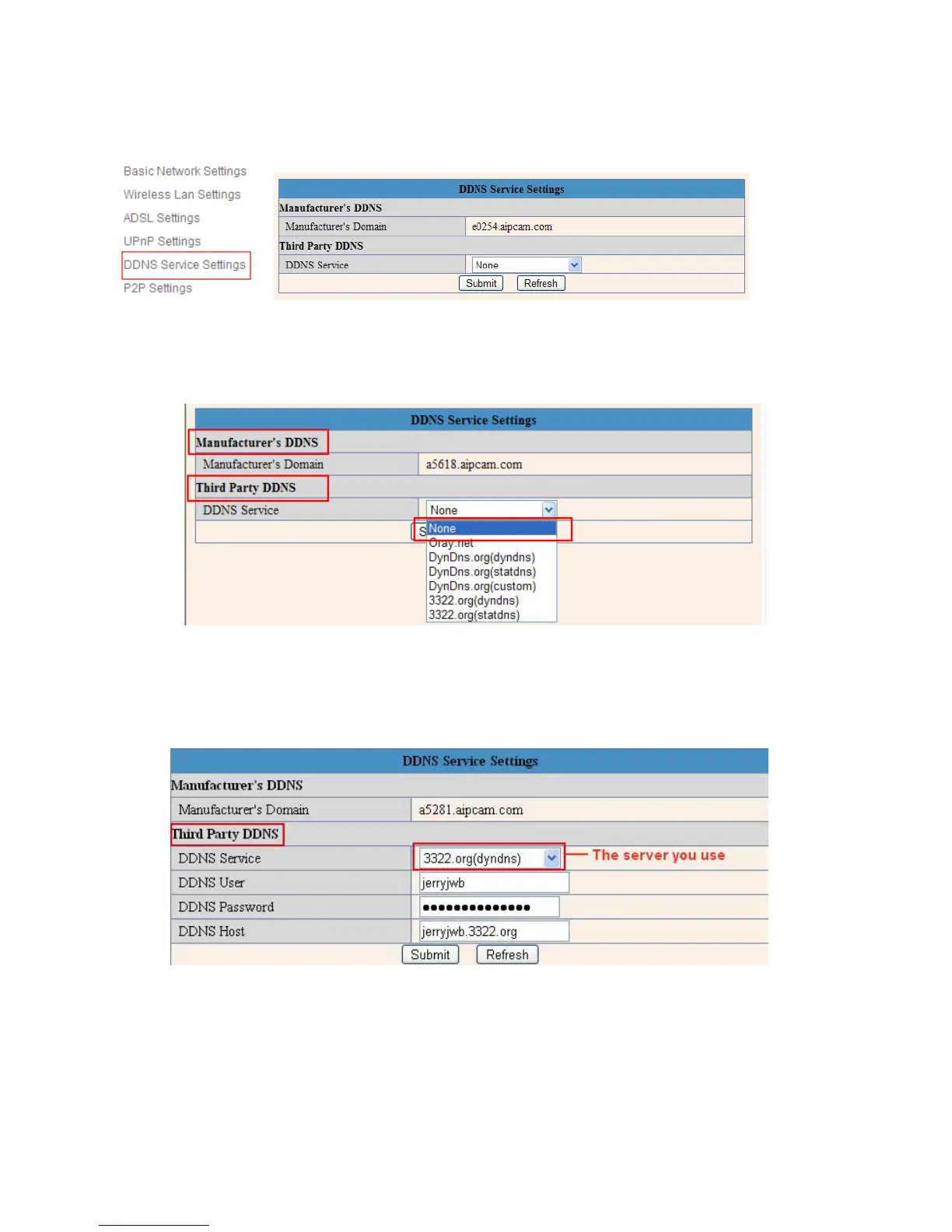 Third Party DDNS: This domain is provided by the third party, such as Dyndns, Oray, 3322 etc.