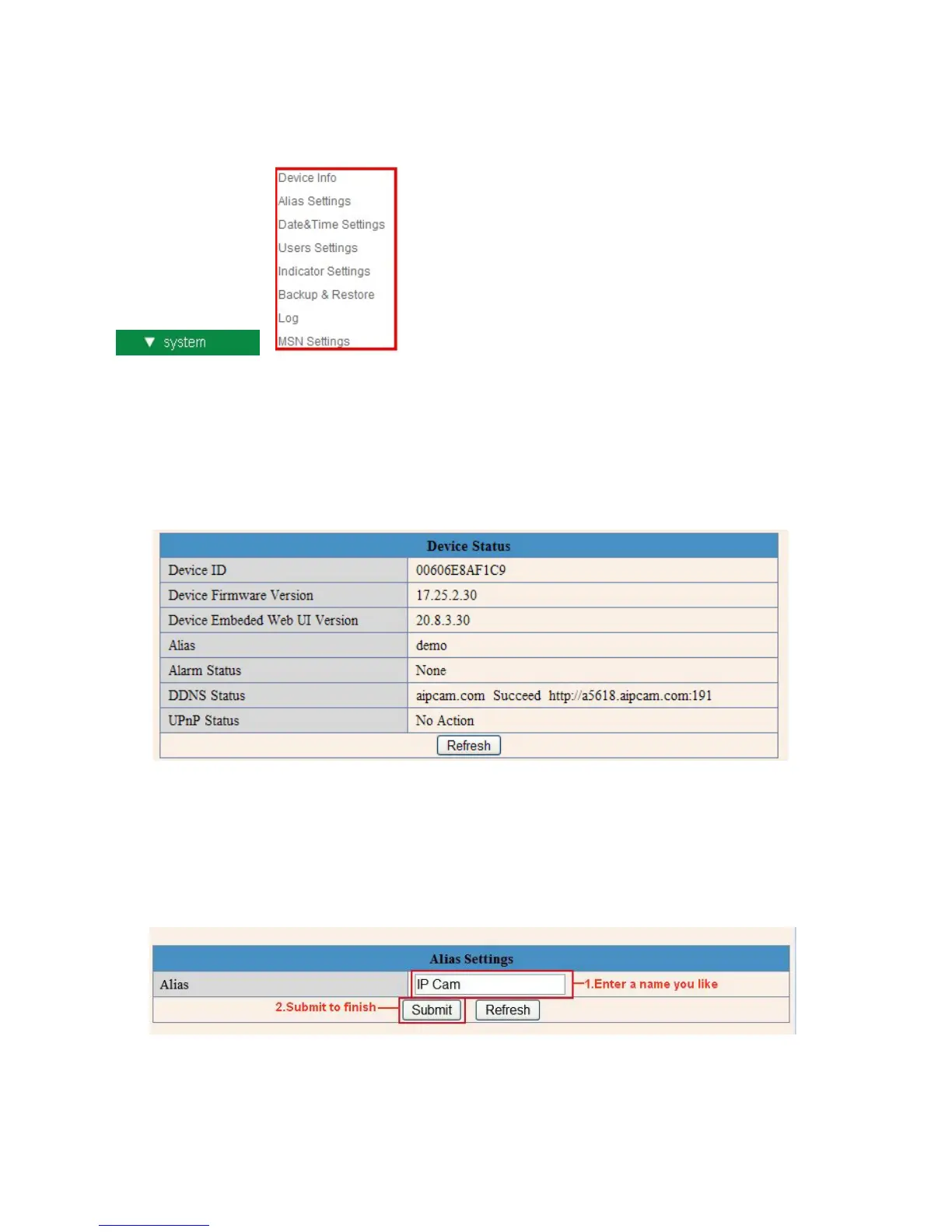 Default device name is anonymous. You set any new name for your camera here, then click Submit.